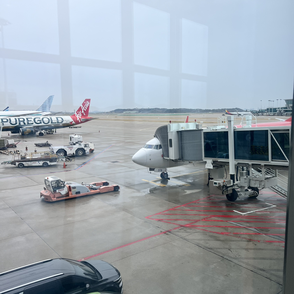 일찍 잠들지 못해 힘겹게 일어나니 날씨가 흐렸다. 보통은 날씨에 따라 기분이 좌우될 때가 있다. 그런데 오늘은 다르다. 가오슝으로 여행 가는 이날만을 얼마나 기다렸던가. 아침부터 씻고 준비해 공항버스에 올라탔다. 버스에 타자 비가 내리기 시작했다. 부슬부슬 내리는 비조차 내 기분을 해치지 못했다. 예상 시간보다 일찍 공항에 도착해서 가방 무게를 재보니 11kg 정도? 저가 항공이라 올 때 무조건 초과될 캐리어를 위해 보조 가방까지 사서 마음이 든든하다. 입국수속을 모두 마치고 면세품을 찾아 비행기에 올랐다.