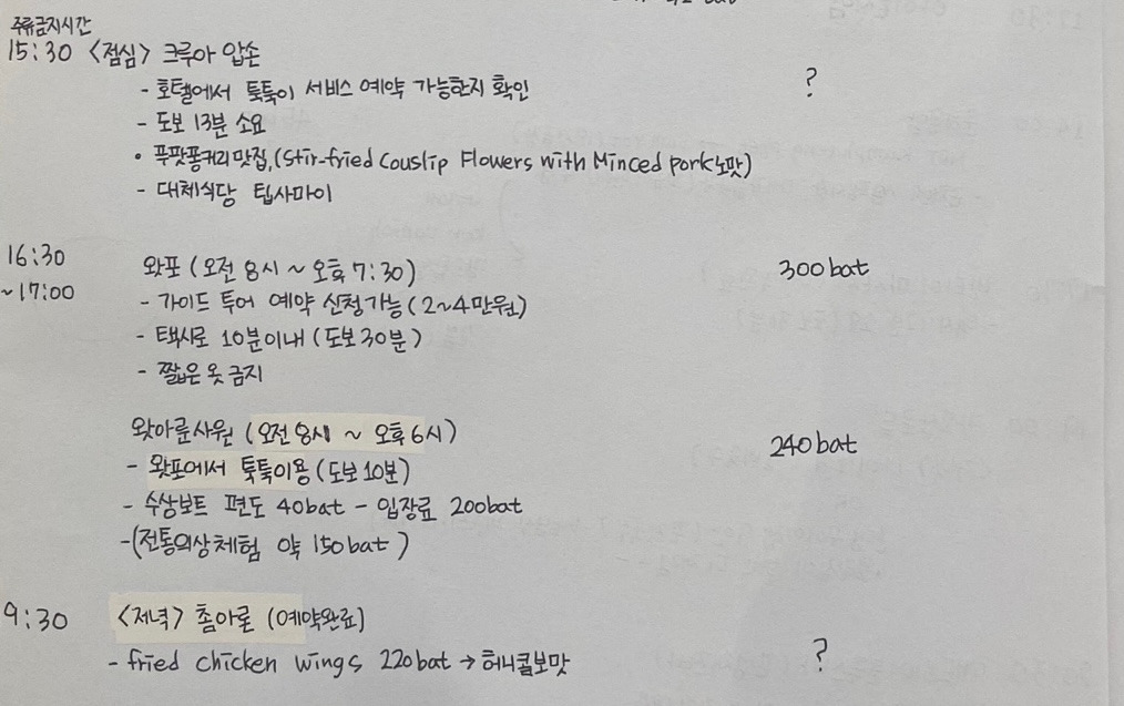 연휴라 비행기 가격은 2배였고, LCC마저도 비쌌다. 심지어 이전 여행에 터뷸런스와 수화물 무게 제한 등으로 저가 항공을 타고 싶지 않았던 나는 타이항공을 예약해 버렸다. 동생이 생각하던 금액을 훌쩍 넘겨서 해외여행에 대한 면역이 없는 동생은 금액에 대한 두려움으로 망설이기 시작했다. 나름대로 합리적인 설득 끝에 내가 더 내주겠다는 강요로 그 망설임을 물리치는 데 성공했다. 그렇게 숙소까지 예약해 버렸다. 나의 여행 메이트인 친구는 본인은 가지도 않는 이 여행에 자신이 일정을 짜주겠다는 멋진 제안을 했고 게으른 J형인 나는 여행플래너 P형 친구에게 냅다 맡겼다. 그렇게 여행 계획까지 순조롭게 짜게 되었다. 그 사이 동생은 방콕에 관한 온갖 유튜브 영상을 찾아보면서 두려움이 기대감으로 바뀌어 가는 날만을 손꼽아 기다리게 되었다.