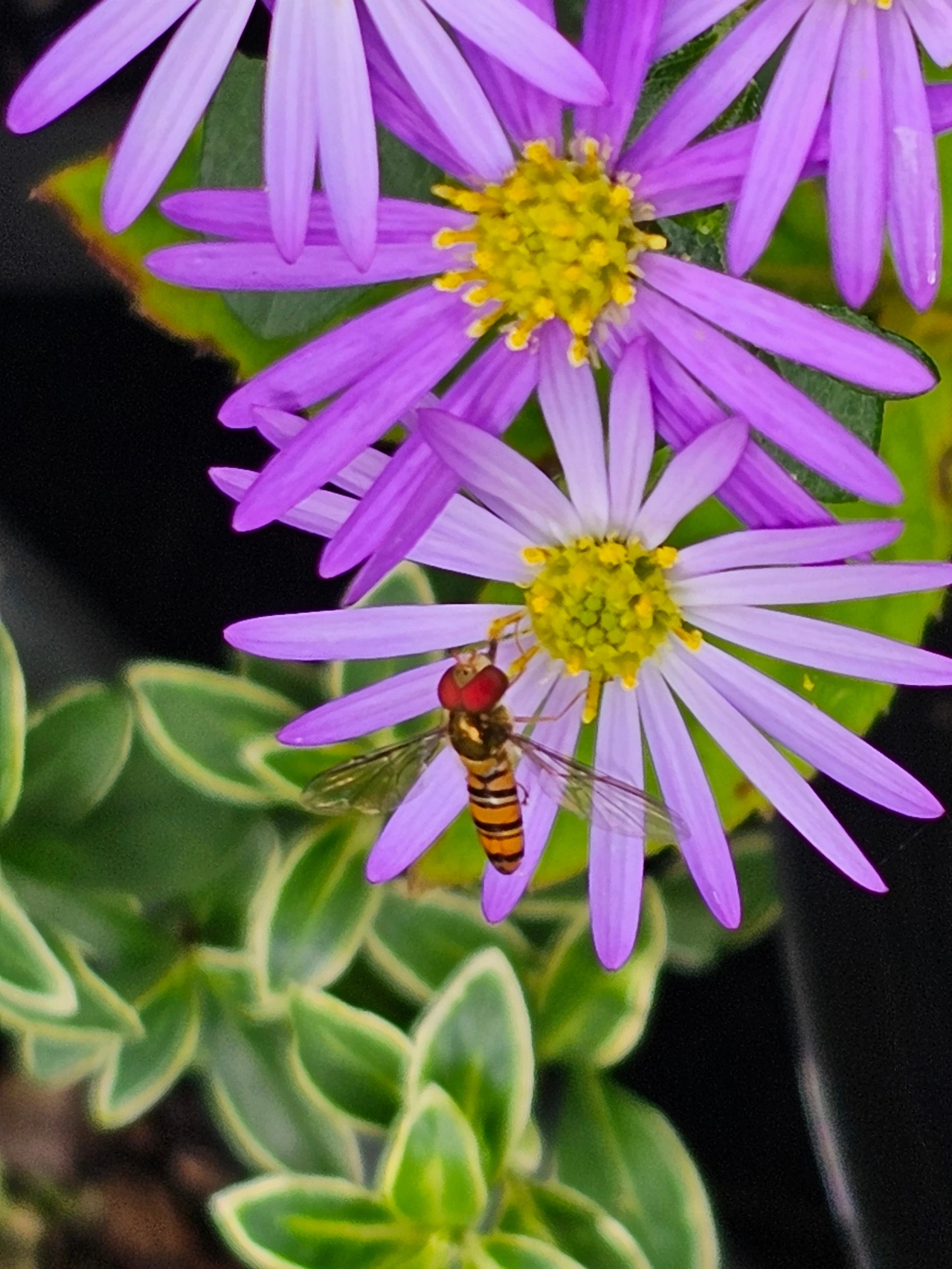 성충은 제법 귀엽다. 혹시 애벌레를 확인하신 분은 성충을 보고 환골탈태라는 말이 저절로 나올 것이다. 꽃등에는 빠르고 부지런하다. 꽃사이를 오가며 꿀을 빤다. 초면에 이 생물체는 무엇일까 궁금했다. 벌 같기도 하고 파리 같기도 했다. 쪼그리고 앉아 자세히 보았다. 손을 싹싹 빌고 침을 묻혀 얼굴을 닦는다. 몸단장을 하고 있었다. 뒷다리도 비비는 걸 보니 영락없이 파리가 하는 행동이다. 머리도 벌보다는 파리 모습인데 몸통 부분이 노란 바탕에 까만 띠를 가지고 있어서 벌처럼 보였던 것이다. 처음 보는 곤충이 특이한 생김새를 하고 있다. 곤충도감은 없어도 이름을 생각해 냈다. 벌과 파리를 닮았으니 벌파리?, 파리벌? 이름을 지어놓고 검색엔진을 돌렸다. 정답은 꽃등에였다. 별명이 벌파리라고 한다. 이럴 수가, 한 번에 맞춘 거나 다름없다. 앗싸!