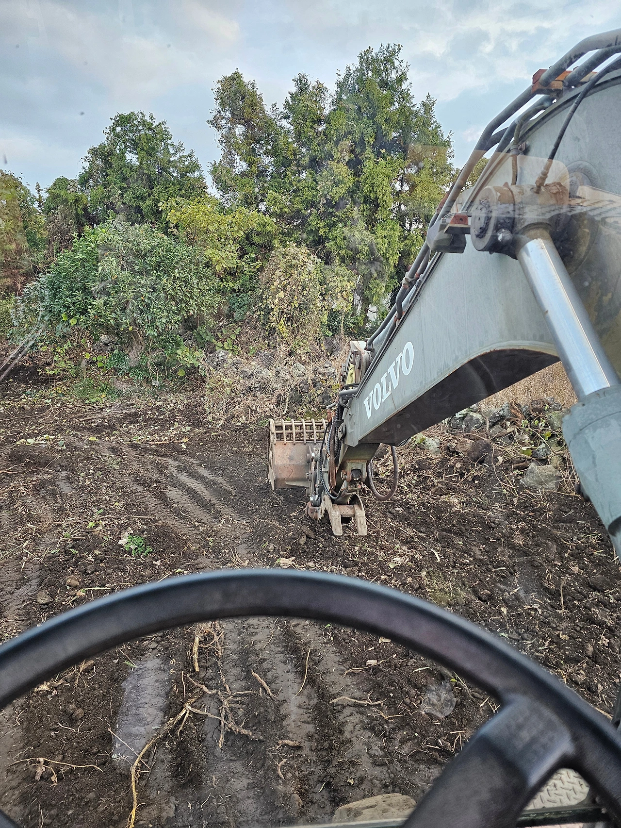 1100평의 밭을 작업했다. 굴착기 6w로 이틀이 걸렸다. 비탈진 밭에 수령 20년이 넘는 꾸지뽕나무가 줄지어 심겨 있었고, 빈자리가 없이 예덕나무와 칡넝쿨과 억새들이 가득했다. 꾸지뽕나무는 전 주인이 가시 없는 것을 사서 심었다고 했다. 적어도 10년 이상 방치한 밭이다. 어떻게 짐작하냐면, 바람이 파종한 예덕나무의 수령을 추측하면 쉽게 알 수 있다.