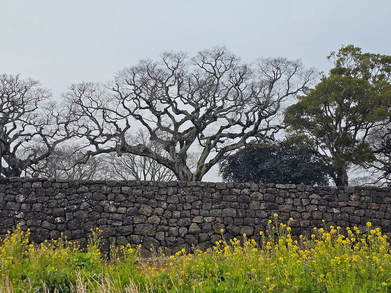 성읍리의 정의현 성벽을 배경으로 팽나무가 아름답습니다. 새순이 곧 움트겠지요.