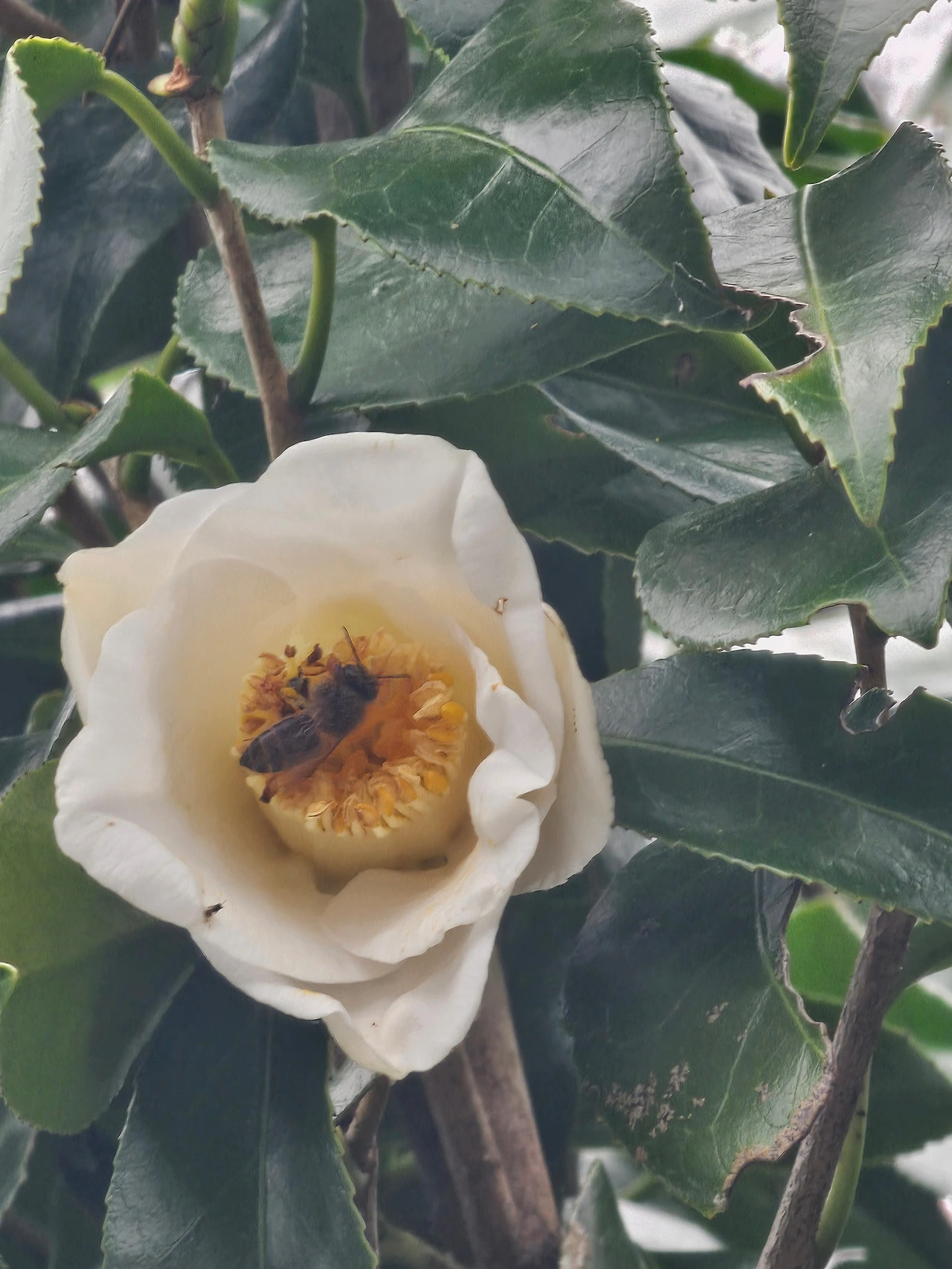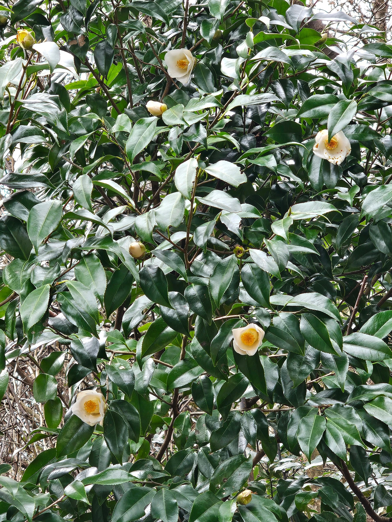 다시 찾은 백동백 나무는 겨우내 참았던 꽃을 내밀었다. 이른 봄이라 성미 급한 벌 한 마리가 수분을 돕고 있다. 꿀은 기브엔 테이크. 홑꽃 백동백은 수천 , 혹은 수만 그루 중 한 그루 - 세어보진 않았으니 아마도 그쯤 - 일 테다. 홑꽃답게 수정된 꽃은 미련 없이 떨어졌다. 개량 외래종 겹꽃들은 다양한 색을 가지고 있지만 꽃이 시들도록 가지에 붙어 있어서 초라해 보인다. 생각해 보니 겹동백은 씨 맺는 것을 본 적 없다. 수정이 안되니 시들도록 붙어 있는 것일까. 벌들이 찾지 않으니 수정이 안 되는 것이고, 벌들이 찾아오지 않는 이유는 아마도 꿀이 없어서 일 것이다.
