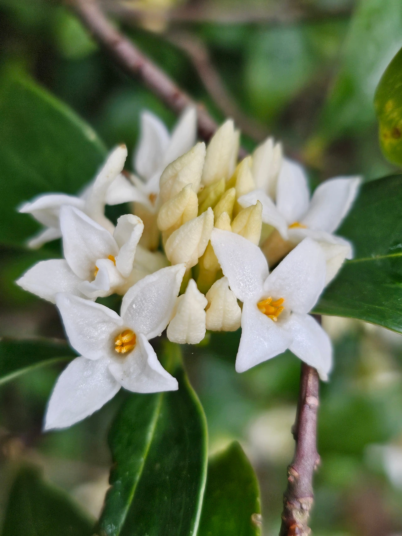 소나무와 참나무가 함께 사는 혼효림 반음지에서 자생하는 백서향이다. 이른 봄에 핀다. 올해는 추위가 오래가서 작년보다 이십여 일 늦게 피었다. 그늘에서 어떻게 강렬한 향기를 만드는지 궁금하다. 별명이 천리향이다. 향기를 맡으면 가슴 깊숙이 파고든다. 암, 수 딴그루여서 암나무에만 꽃이 진 후 작고 예쁘장한 빨간 열매가 달린다. 암, 수 구분은 열매가 달리는가 안 달리는 가로만 짐작한다. 열매는 독성이 있다고 한다. 이를 알기 전에 열매 서너 개를 먹어봤다. 아잌후! 이를 어쩌나. 다행히 어떤 특이점이 없었다. 뭐지? 모르고 먹어서 괜찮았나? 알고 나니 다시 먹을 생각이 사라졌다.