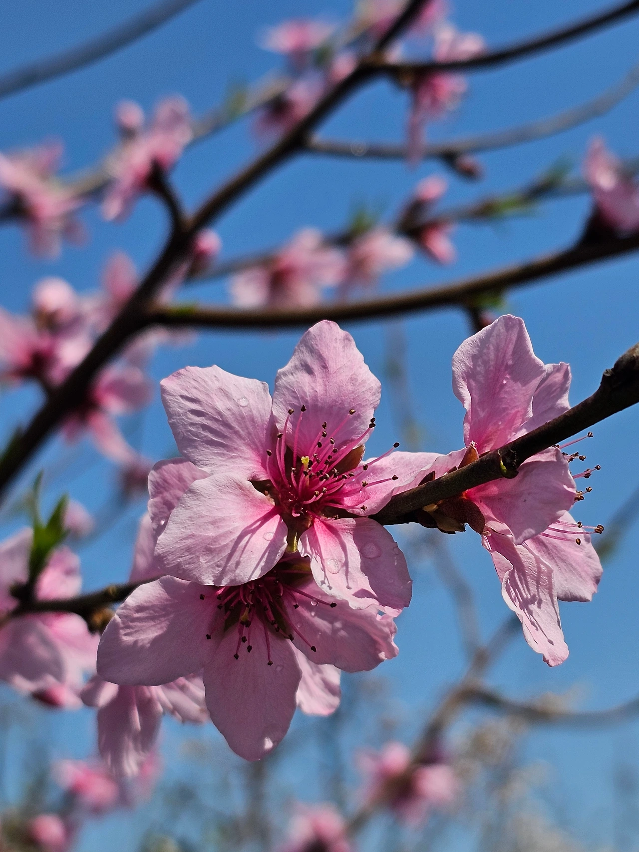 개나리와 목련과 벚꽃이, 개복숭아와 라일락, 사과꽃이 함께 피다니요. 매년 봄마다 꽃피는 시기는 달랐습니다. 제주 북동쪽 중산간에 위치한 저의 정원에는 육지보다 더 늦게 피는 때도 있었지요. 그럼에도 순서가 있었지요. 개나리는 이월말에서 삼월초에 일찍 피고 개복숭아는 봄이 무르익을 무렵 피었습니다. 벚꽃은 삼월 하순에서 사월초순에 피었지요. 늦추위가 이어지다가 기온이 확 오르니 기다리던 꽃들이 너도나도 꽃망울을 터뜨렸습니다. 피고 지는 순서대로 보는 재미도 좋았지만 일제히 피어서 꽃잔치 벌어진 봄 가운데 서 있는 기쁨도 쏠쏠합니다.