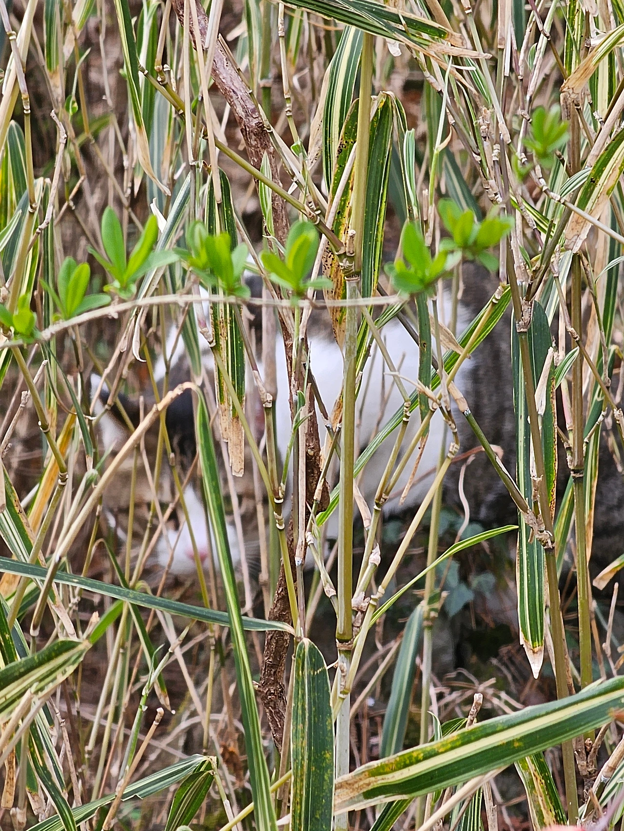 숲에 은신한 고양이가 보이나요? 반려묘 별이랍니다. 들키지 않으려 꼼짝 않고 이쪽을 보고 있습니다. "나를 봤나, 못 봤나?" 생각하는 듯합니다. 별이는 흰색과 진갈색 얼룩무늬를 지닌 커다란 몸집을 가졌습니다. 처음 보는 분은 "고양이 맞아요?" " 너무 크다."라고 합니다. 집에 온 지 7년쯤 되어 말귀도 잘 알아듣고 눈치도 여간 빠른 게 아닙니다. 집 안에서 키우다 보니 밖을 동경하여 틈만 보이면 탈출합니다. 화장실 창문을 열어 놓을 때, 현관문이 천천히 닫히는 순간을 노려 뒤에 숨어 있다가 도망갑니다. 실컷 놀고, 영역 순찰하고, 배고프거나 아쉬울 때 문 앞에 기다립니다. 별이를 키우며 밖에 자유롭게 내놓지 않습니다. 숲과 정원을 누비다 진드기를 달고 오거나, 영역 안에 들어온 길고양이와 심하게 싸워 상처 입고 들어오는 경우도 있기 때문입니다. 집사의 마음을 알면서도 일주일에 한 번 꼴로 탈출하여 자유를 만끽하는 별이랍니다. 별이는 집 안에 돌아오면 반성 모드로 바뀝니다.