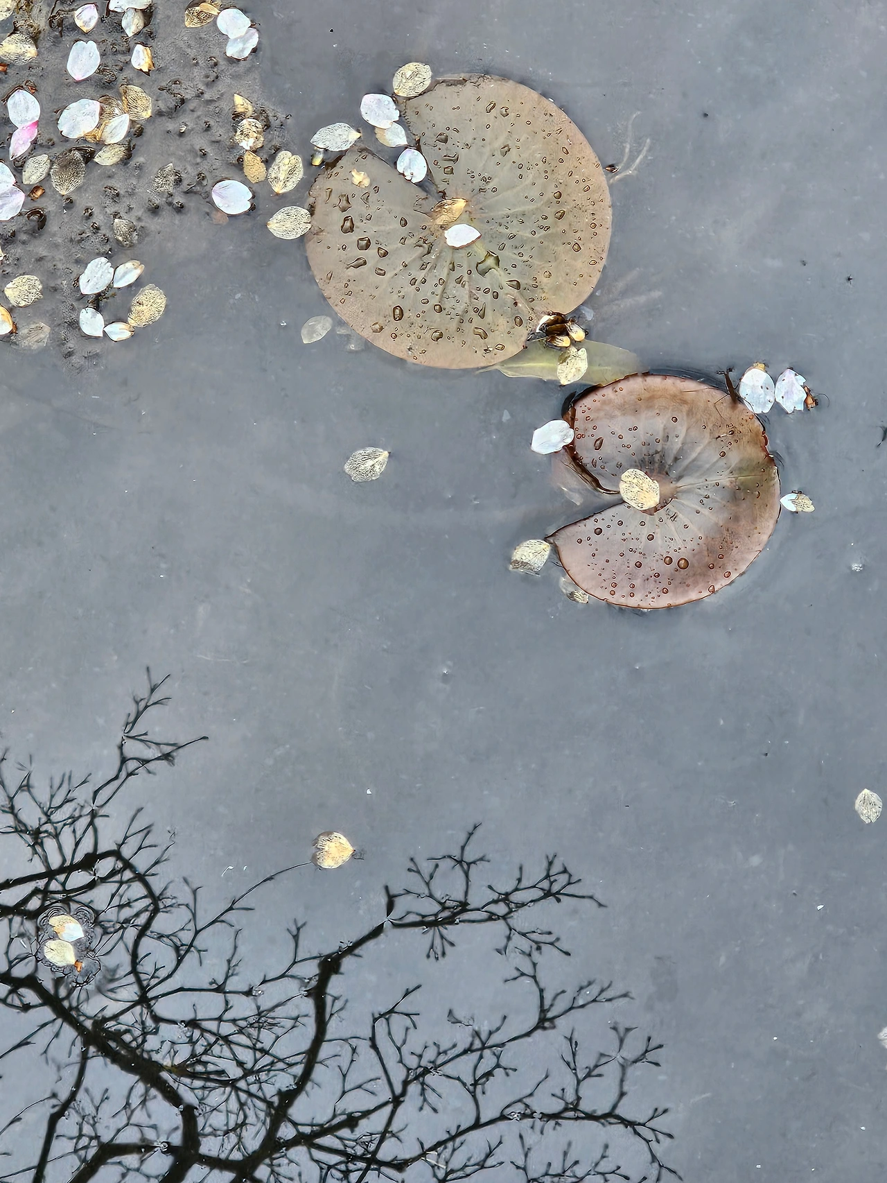 늦잠꾸러기 산딸나무는 벚꽃 잎이 떨어지는 소리에 화들짝 놀라 깨었습니다. 수련은 동그라미를 그리다 꽃잎을 받아줍니다. 누구는 물속에 살고, 누구는 공중에서 내렸고 누구는 가짜입니다.
