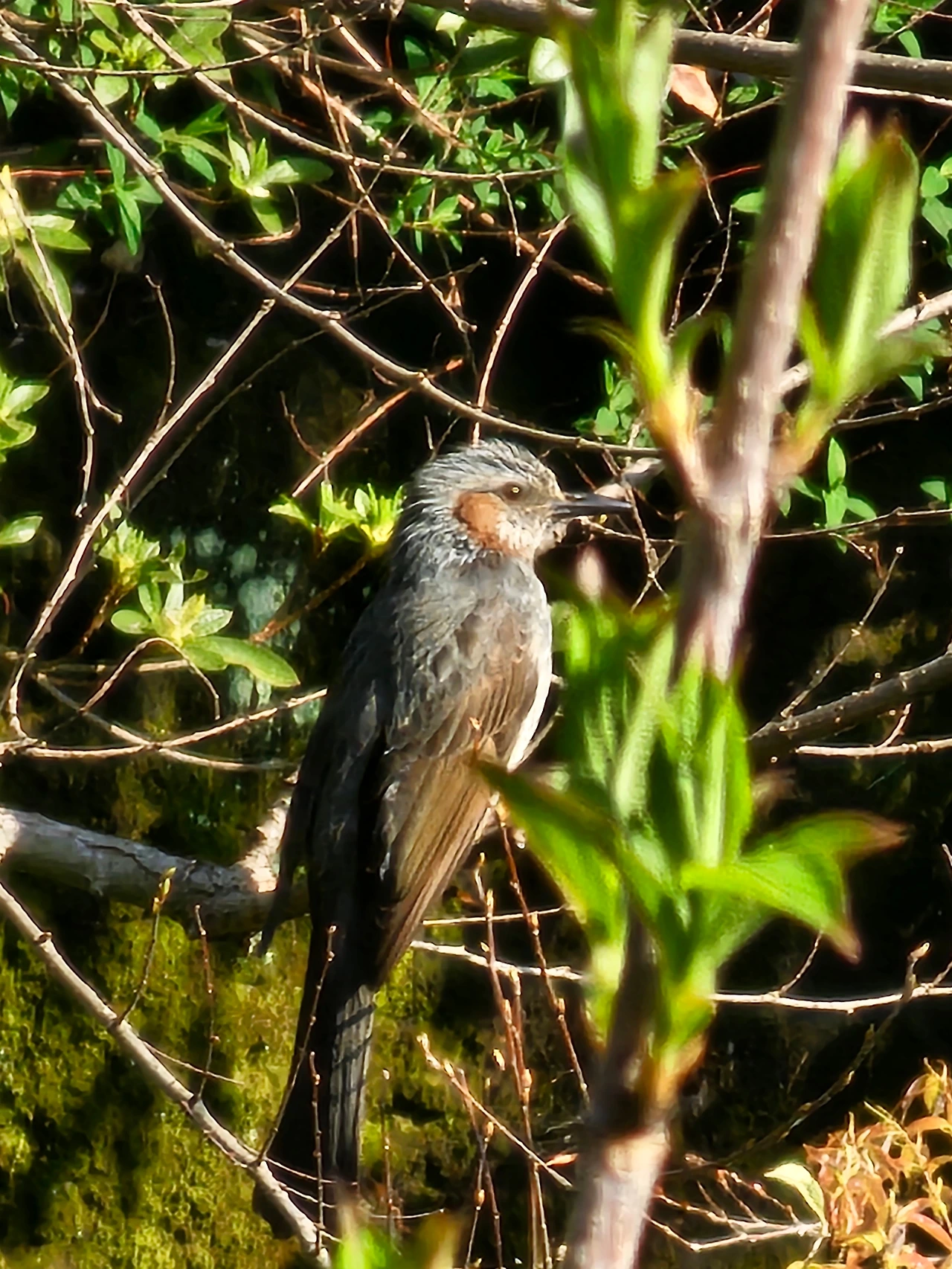 앞을 보나, 옆을 보나. 직박구리의 시상에 어떻게 보이는지 궁금하다, 눈이 양 옆을 향하고 있으니 분명 양옆이 잘 보이겠지. 벌레 없는 겨울을 어찌 보냈나. 새순이 돋으며 깨어난 송충이들이 반가울 것이다. 외모는 화려하지 않으나, 그런대로 무난한데, 목소리는 거슬린다. "삐익, 빼엑" 아무리 들어도 호감이 가질 않는다. 해충을 먹이로 하면서 사철 머무르니 소리가 거슬려도 그러려니 한다.