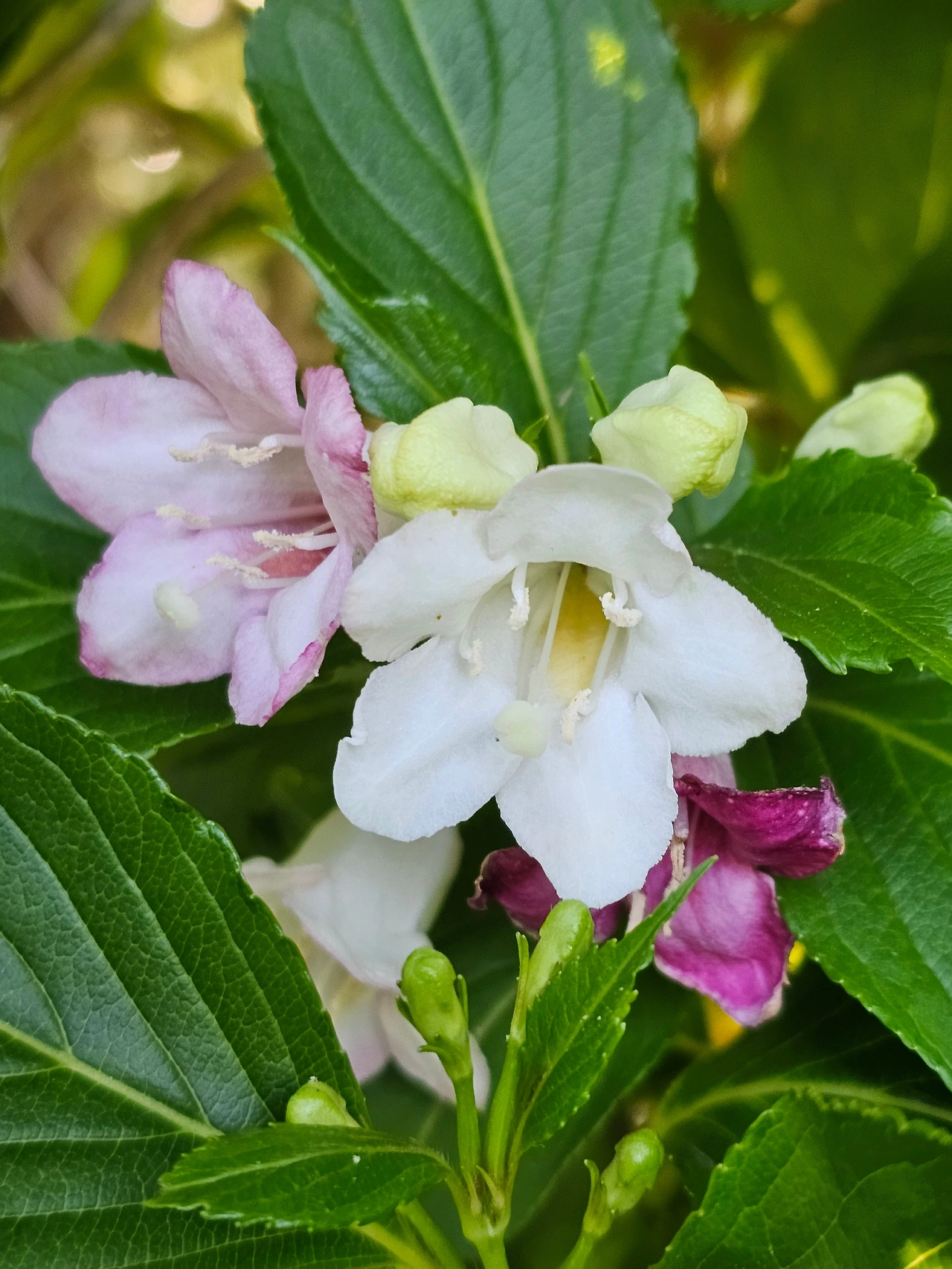 삼색병꽃은 오월 중순에 가장 늦게 핀다. 이중 향기가 나는 꽃은 삼색병꽃이다. 흰색으로 피어서 날이 지날수록 분홍이 되었다가 빨강으로 변한다. 피는 시차가 있어서 세 가지 색을 동시에 볼 수 있다. 삼색 병꽃나무의 향기는 알 듯 모를 듯 은밀하다.