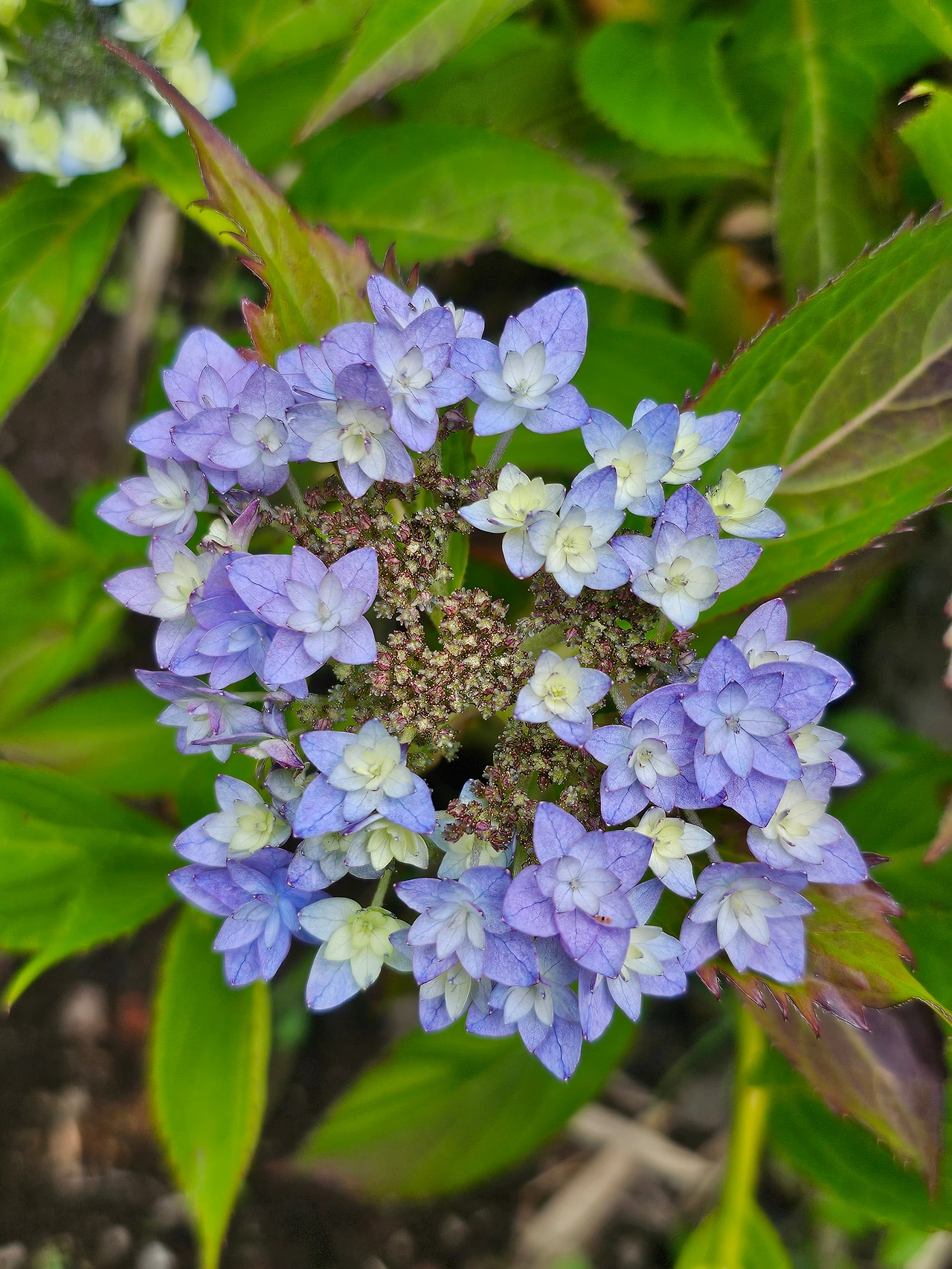 수국이 있었지 유월에, 비와 친한 꽃, 그늘에서 빛나는 별들, 나 여기 있다고 안내꽃을 세운 후, 수정하면 지조를 지키는 꽃. 여름 어귀에 수줍은 물기 머금고, 햇살 한 줌에 감사하는 그대.