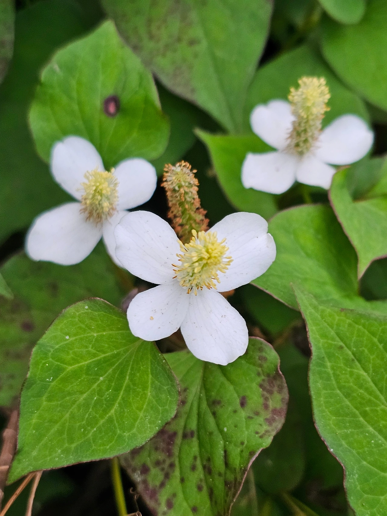 어느 날부터 하얀 꽃이 보였다. 몇 개의 예쁜 꽃이 정원 가장자리에 자리 잡았다. 이게 웬일이야? 이 식물을 알아보니 약모밀이라고도 하는 어성초였다. 물고기 비린내가 난다고 해서 어성초라 한다. 어성초를 만지거나 뽑으면 비린내가 강하게 난다. 피 냄새 같기도 하다.