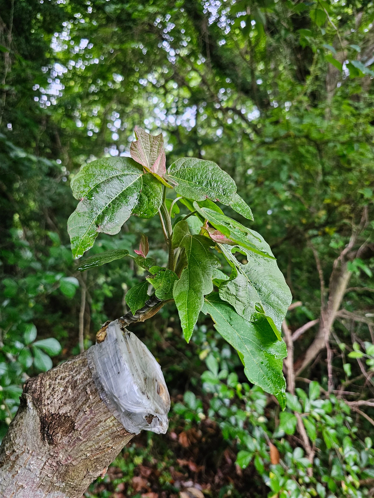 접목 시기로는 늦은 감이 드는 사월 초에 예덕나무 접목을 하였다. 접수를 겨울에 미리 준비했던 것도 아니었고, 순이 돋지 않은 가지로 접목을 시도했었다. 좋은 시기를 보내고 뒤늦게 접목할 생각이 든 것은 밀린 숙제를 하는 심정이었다. 해야지 하다가 바쁜 일에 미루고, 비가 와서 미루다 이, 삼월을 넘겨 버렸다. 반드시 해야겠다는 동기부여가 약해서 다른 일들에 밀린 것이었다. 안 해도 딱히 피해는 없고, 하면 좋은 그런 일이었다. 유월 중순에 활착 되어 새순이 자라는 개체가 일곱 개 중 세 개다. 아주 괜찮은 성과이다. 알맞은 시기와 준비를 더했다면 성공률은 높아졌을 것이다. 같은 시기에 접목한 동백나무는 모두 실패하였다. 정성을 더 들여야 함을 알았다. 동백나무는 하접(여름접목)을 시도해 보아야겠다. 접목이 어렵게 느껴지는 것은 '내가 해도 될까?' 하는 의구심과 번거로운 준비와 세밀한 작업과정을 거쳐야 하기 때문일 것이다. 결국 해 보면 실패를 통해 더 나은 방법을 찾게 되고, 눈으로 아는 것보다 손으로 익힌 경험이 실제적일 것이다.