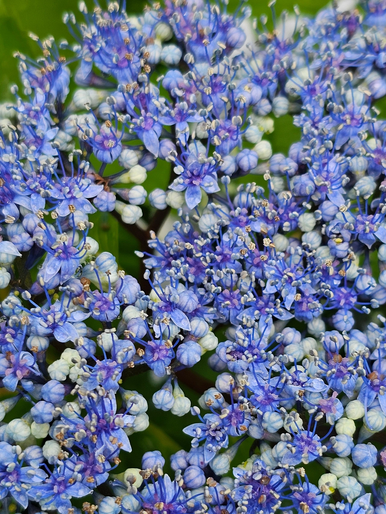 유월은 수국의 계절이다. 다양한 품종들이 있어 다채롭다. 개량종이 아닌 원종이라 한다면 산수국이다. 산수국은 가상화와 진성화가 있다. 가장자리의 큰 꽃, 가상화가 먼저 피고 안쪽의 진성화는 작고 촘촘한데 가상화가 핀 다음, 열흘 정도 지나야 피기 시작한다. 가상화는 벌을 안내하는 역할을 한다고 여겨진다. 가상화는 씨가 없고 진성화가 수정되면 하늘 향하던 꽃잎이 땅으로 쳐진다. 제 일을 다 했으니 안내할 필요가 없을 것이다. 진성화가 꽃망울을 열기 시작하면 별무리가 내려온 듯 아름답다. 산수국 꽃을 가상화, 진성화로 나누어 부르지만 가상화도 나름대로 역할을 하기에 굳이 가짜꽃이라고 할 필요는 없을 것이다. 제주 종달리 해안도로 가에 수국이 한창일 것이다. 이 수국들은 진성화가 없는 가상화들이 핸드볼 공만 한 크기로 울긋불긋 핀다. 하여 씨 없는 꽃이다. 비 개인 오후, 종달 해안 절경과 어우러진 수국을 보아도 좋고, 뜨락에 수줍게 피는 산수국에 취해도 좋을 유월의 하루에 머문다.