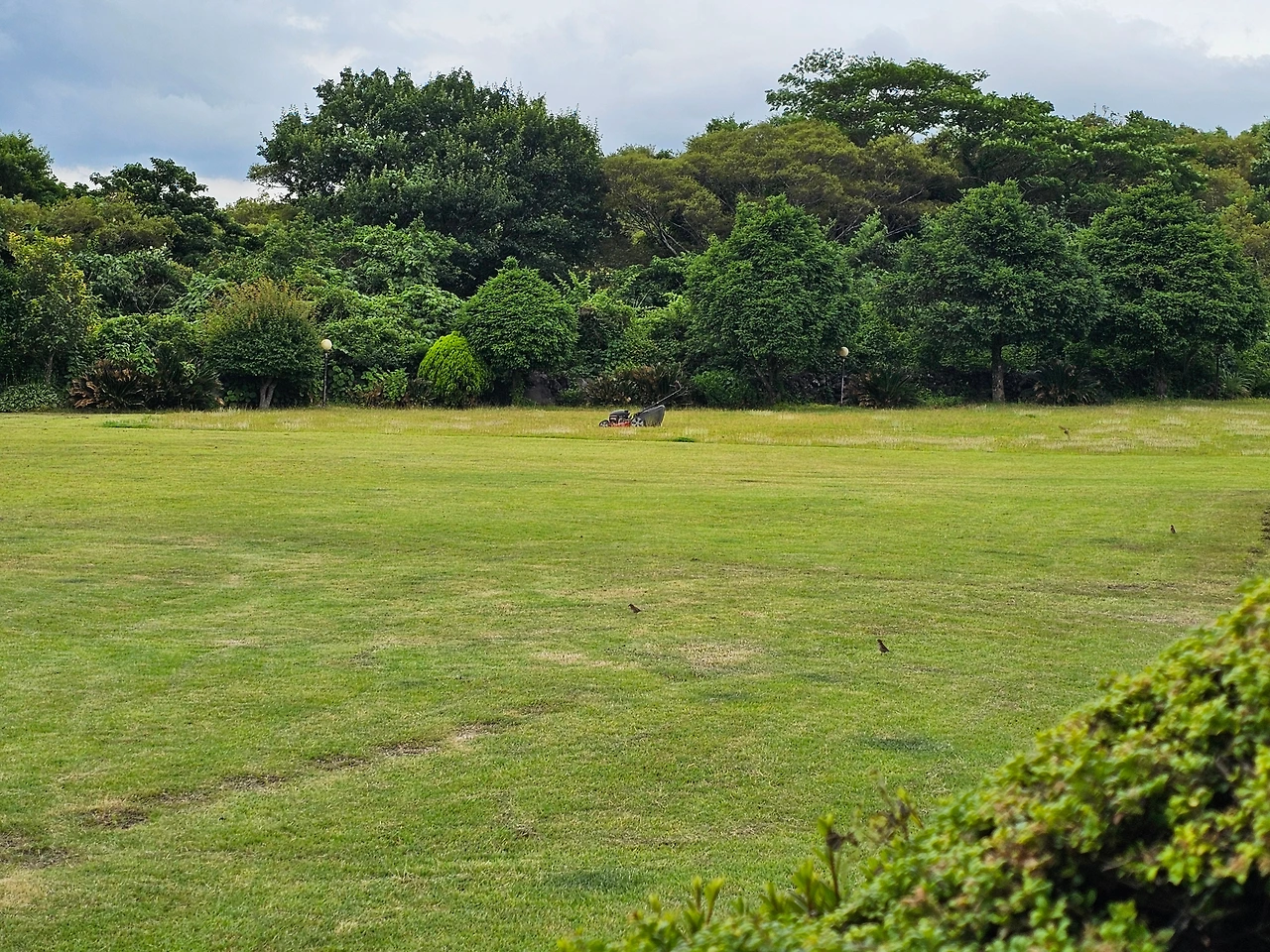 시원하게 잔디 이발 했습니다. 넓은 잔디밭입니다. 제 정원은 아니고요. 몇 달 관리 안 해서 개망초를 비롯 온갖 잡초가 신나게 돋았어요. 풀씨가 떨어지기 시작해서 더는 방치할 수 없는 상황이었죠. 먼저 키 큰 개망초를 뽑아내었습니다. 이렇게 넓은 잔디밭은 가솔린 엔진 잔디 깎기로 깎으면 일정하게 깎이고 예초기보다 훨씬 수월합니다.