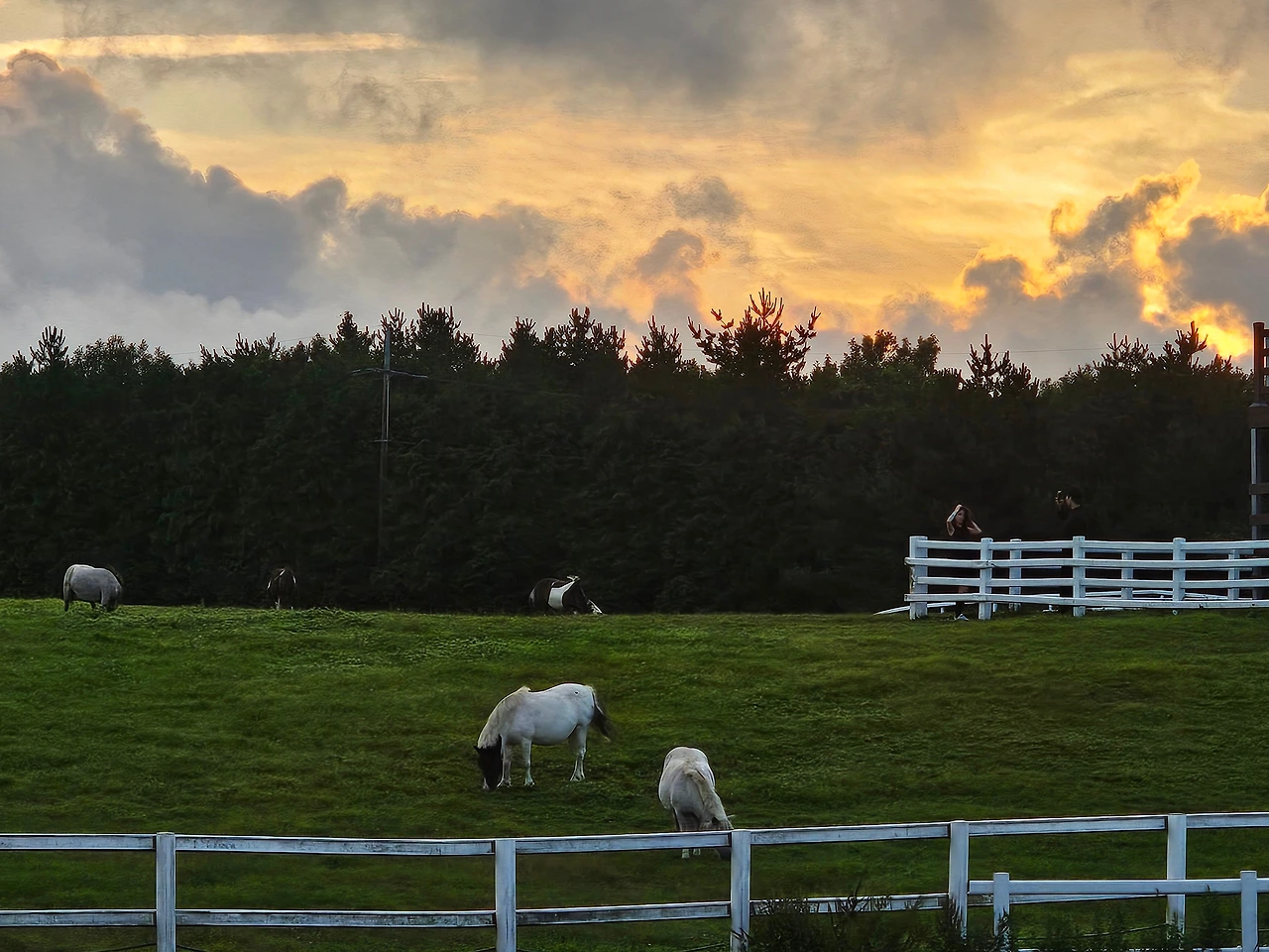 교래 목장이다. 자주 지나는 길이다. 후박나무 가로수 사이로 힐끗 바라보면 늘 비어 있었다. 초원의 주인공들이 한가롭다. 잘 관리된 목초지에 깃든 노을도 흰 말들을 반긴다. 마침 지나던 구름은 키 큰 숲너머로 그림을 완성한다. 신호등에 정지한 한 사람이 엿본다.
