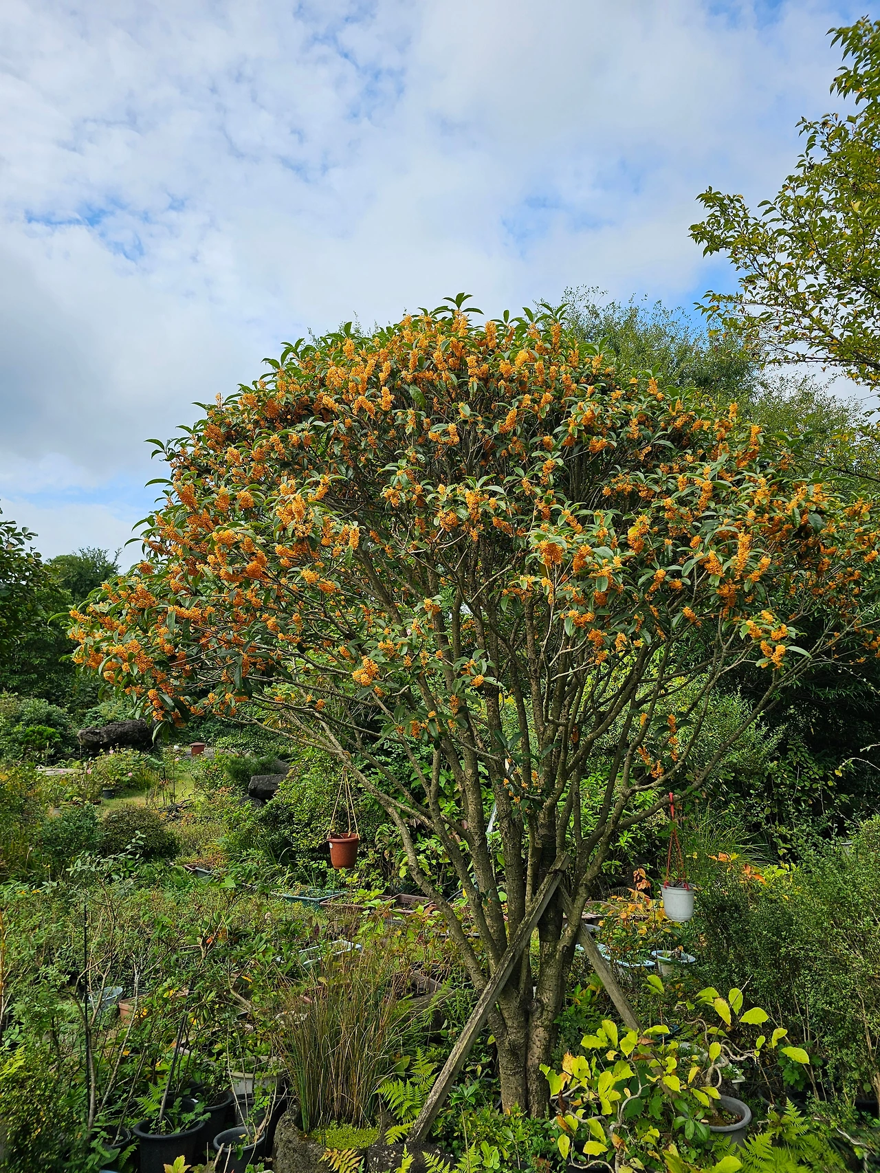 지난한 여름의 열기를 품었다. 한 순간 정적에 휩싸인, 천상의 향기가감도는 정원이다. 사흘 간의 첫날이다. 365일 중의 단 3일 간 피었다 지는 꽃이다. 손가락으로 조금 움키어 맛을 본다. 처음 맛보지만 독성은 없나 보다. 달콤하다. 혀에 닿는 촉감은 부드럽다. 은은한 향기는 마치 귀부인이 곁을 스치며 맡아지는 품위를 지녔다. 꽃말은 진실한 사랑, 유혹, 달콤한 사랑이다. 꽃술을 담거나, 잎을 차로 끓여 먹으면 기침, 중풍, 통증완화에 약효가 좋다 하니 버릴 게 없는 귀한 나무다. 심지어 상록수이다. 팔방미인이라 할까.