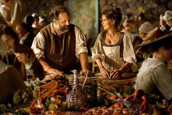 18세기 후반부 프랑스 음식들을 다룬 요리 영화 "딜리셔스: 프렌치 레스토랑의 시작(2021, Delicious)"의 포스터 장면