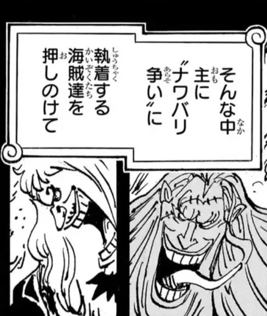 만화 원피스에서 오른쪽 인물이 바로 세계관 최강자 중 1명인 왕직이다.