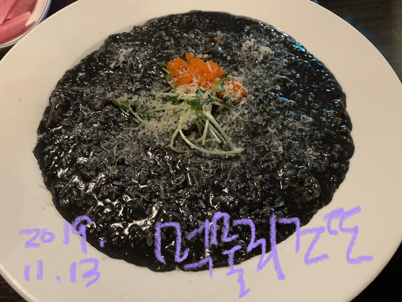 동네 파스타집을 가면 늘 시키는 먹물리조또.