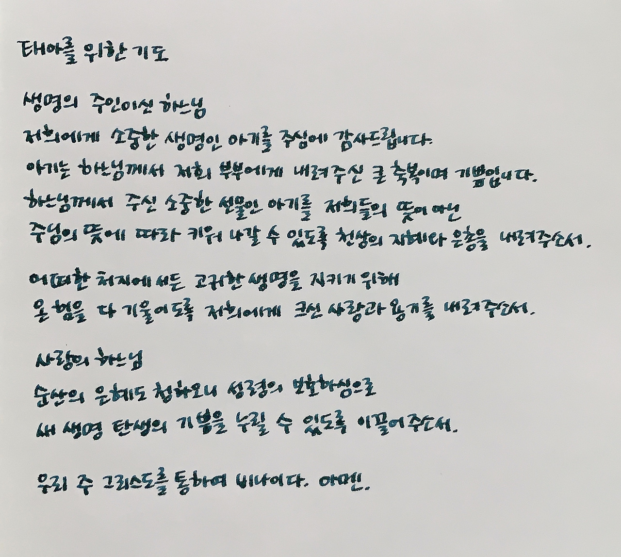 태아를 위한 기도. 덕분에 하루하루 좀 더 실감하게 되고, 감사한 마음을 갖게 되는 것 같다.