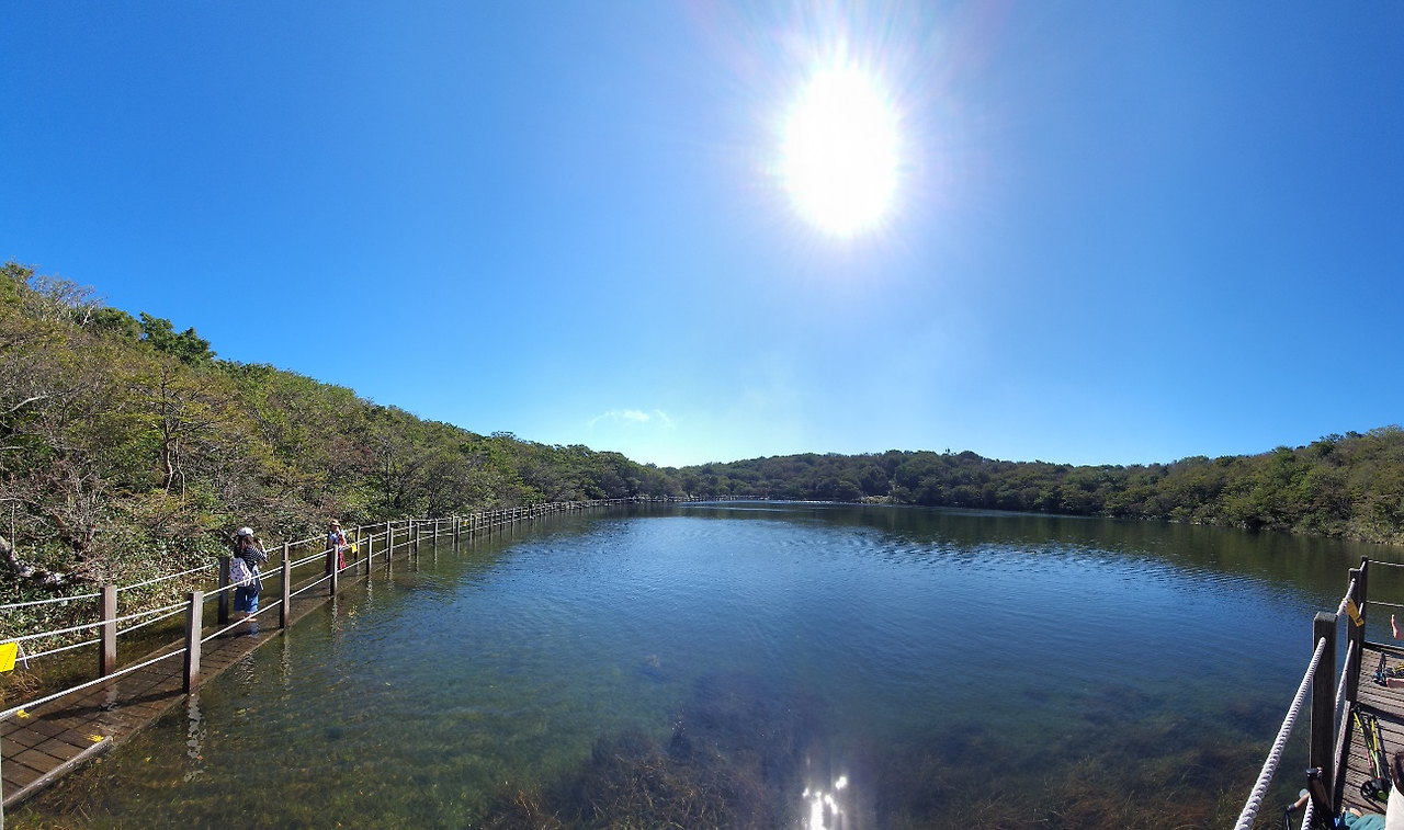 아무래도 정말 백록담은 힘들겠다고 생각하며 사라오름으로 계단을 올랐는데, 도착해서 본 호수 풍경에 감탄사를 연발했다. 너무나도 시원하게 트여있는 산정호수.