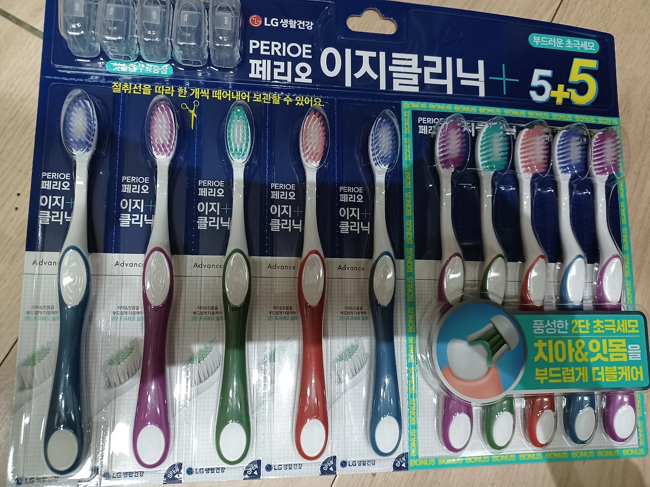 저희 집은 그냥 몇 년째 페리오 이지클리닉 어드벤스 초극세모 칫솔을 사용하고 있습니다.