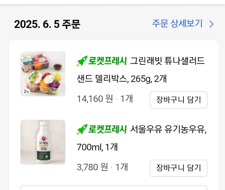리더님처럼 방문하지는 못하겠고 쿠팡앱을 열어 샌드위치와 우유를 주문했어요. 리더님 댁으로~