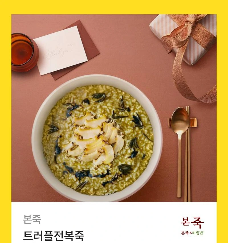 너무 감사하고 힘이 났습니다. 제가 이번에 알았는데 본죽이 진짜 비싸더라고요. 트러플 전복죽은 17,000원이에요. 그냥 전복죽도 14,000원. 그리고 배달비는 4,000원 또 따로 받아요. 쿠팡이츠는 보통 쿠팡와우회원에게는 배달비 무료 서비스를 주는데 본죽은 똑같이 배달비 4,000원 내야 하더라고요.