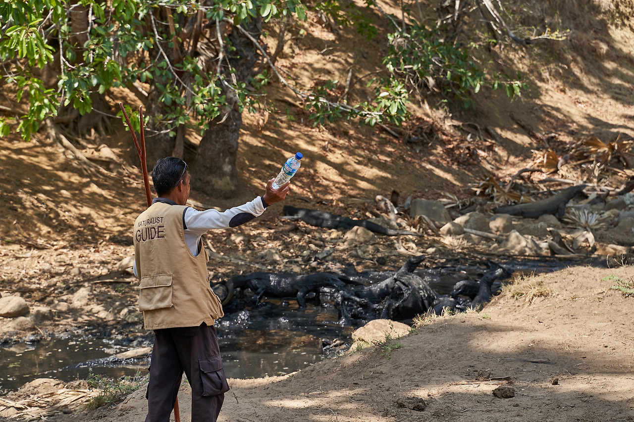 가이드의 설명에 의하면 인도네시아 정부 차원에서 코모도 국립공원을 조성해 개체 수 보호에 나서고 있다. 그러니까 레인저들이 들고 있는 끝이 Y자 모양의 막대기는 사람들의 방어를 위함인 동시에 인간으로부터 코모도 드래곤을 보호하려는 용도였다.