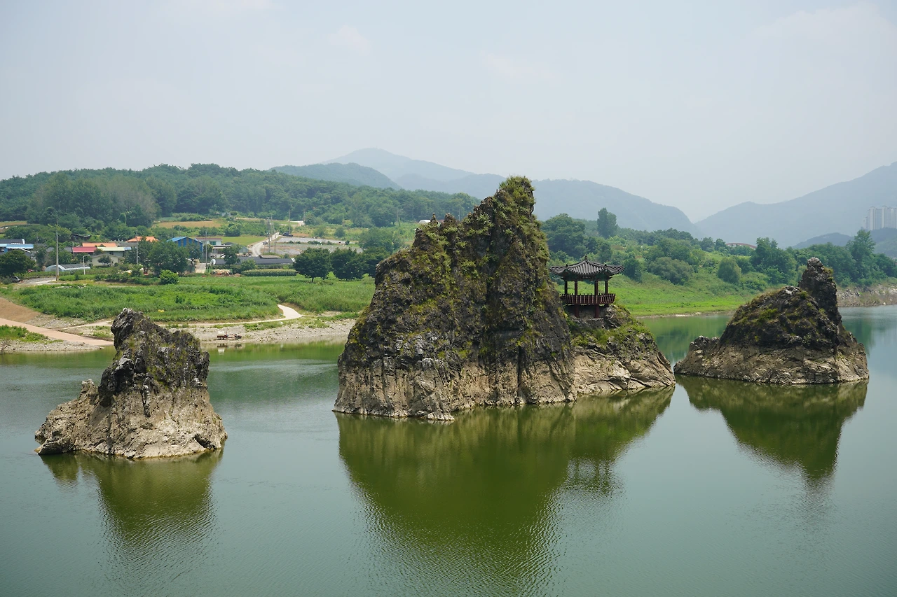 첫 행선지는 단양의 자랑인 도담삼봉. 단양군보다도 더 유명한 단양팔경, 그중 맏이인 도담삼봉은 정도전을 필두로 선비들의 짝사랑을 받았던 명승지다. 유유히 흐르는 남한강 사이로 6m 높이의 장군봉이 우뚝 솟아있었고 장군봉을 중심으로 좌측에는 첩봉과 우측 처봉이 점잖게 앉아있는 모양새였다.