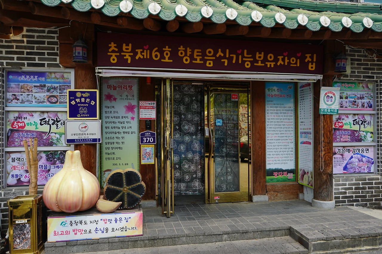 마침 일정 중 중식을 해결하는 곳은 충북 제6호 향토음식 기능 보유자의 집이었다. 온갖 종류의 마늘 음식이 한상 가득 차려지는 ‘마늘정식’으로 육회와 수육부터 만두, 옥수수 샐러드에 이르기까지 실로 다채로운 음식들을 한 번에 맛볼 수 있으니 어떤 메뉴를 선택해야 할까 고심할 필요도 없다.