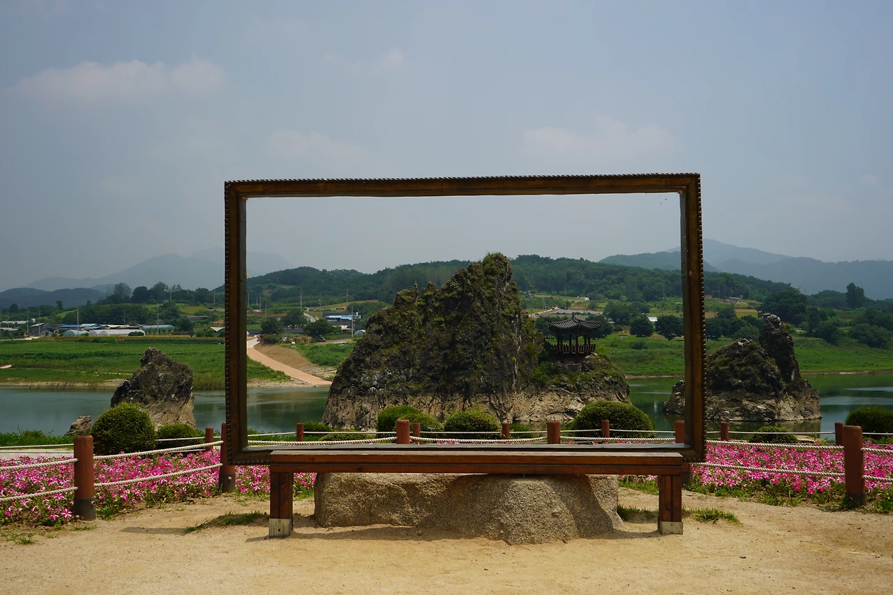단양 석문은 그 자체로도 아름다웠지만 때로는 빛을 담으며 자연이 빚어낸 창문 역할을 톡톡히 해내기도, 프레임 안에 남한강과 강 건너 마을의 모습을 그리며 한 폭의 수채화를 만들어내기도 했다.
