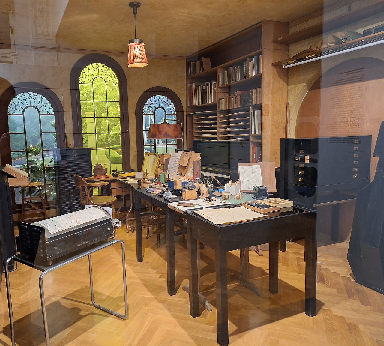 쇤베르크가 직접 그린 그림들과 기타 등등이 전시되어 있었다.