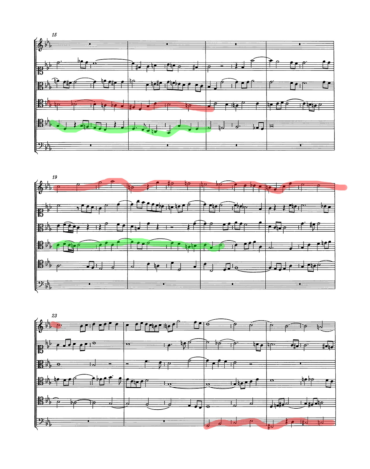 진술과 전개(Narratio & Confirmatio): 주제가 성부별로 모방되고 전조를 통해 확장되며, 반음계적 특징을 포함한 난해한 주제를 조화롭게 처리한다.