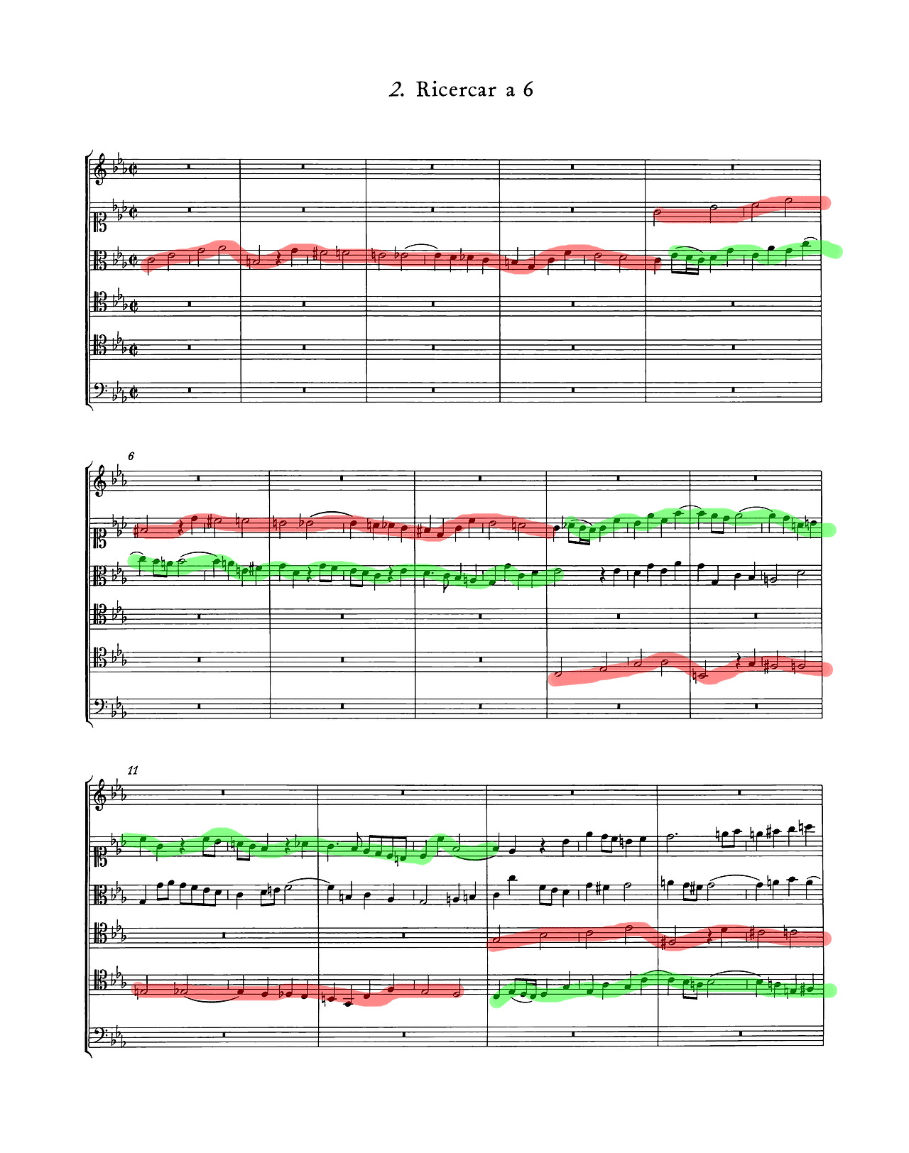 〈3성 리체르카레〉는 C단조(C minor)에서 시작된다.