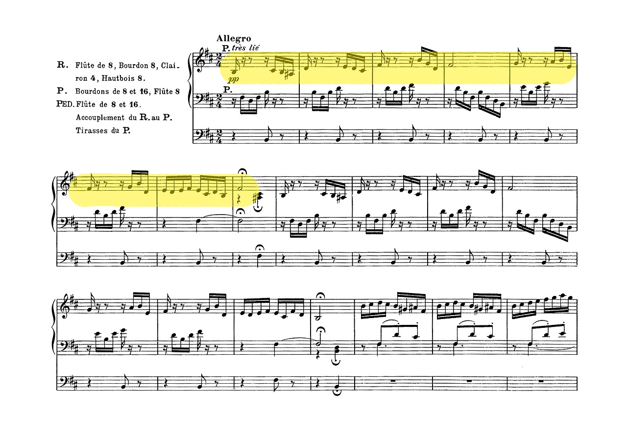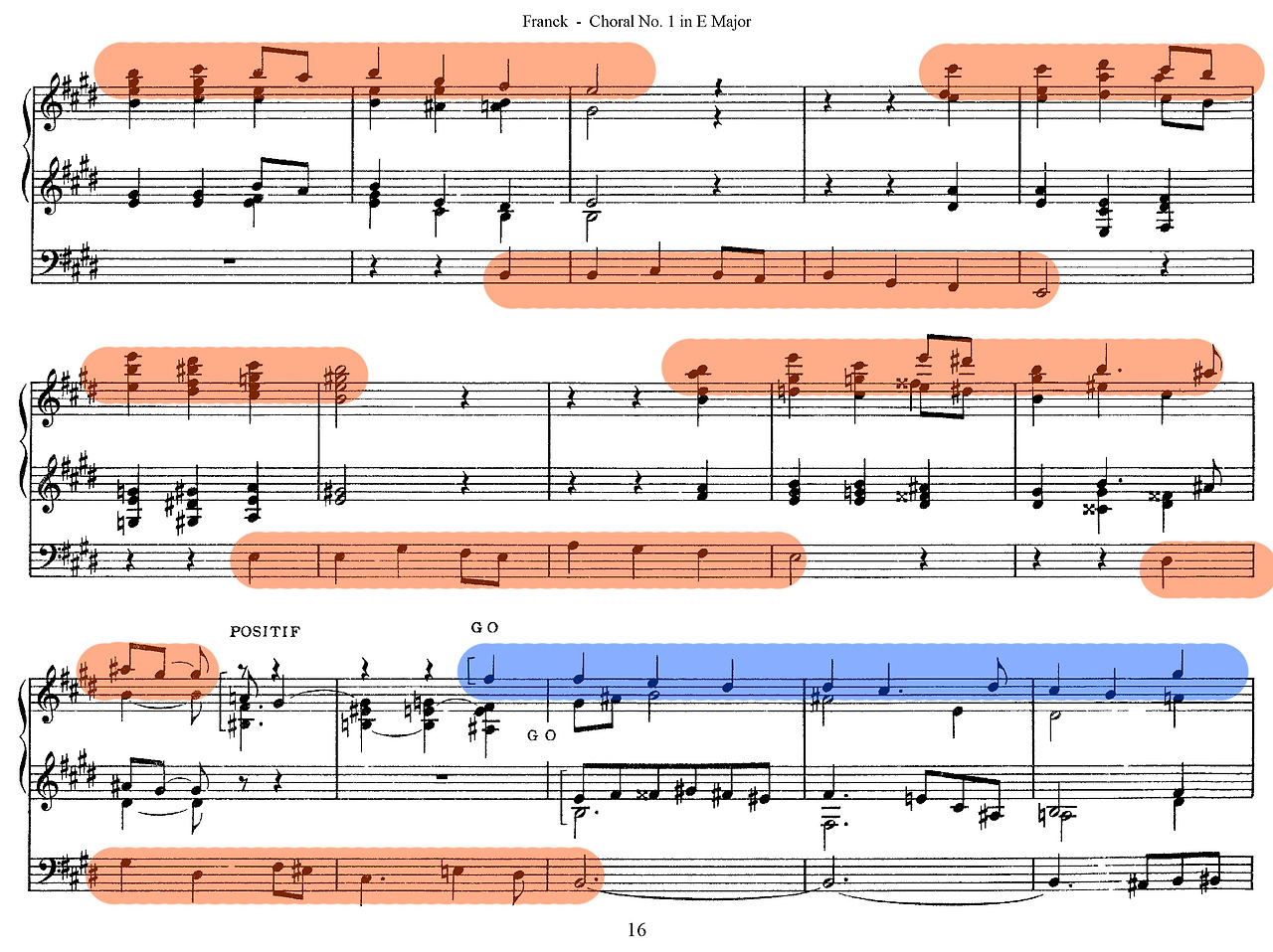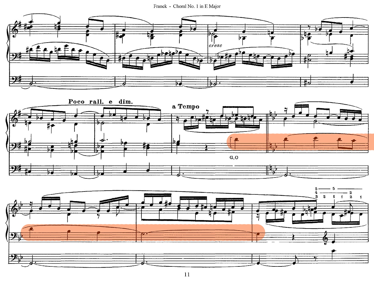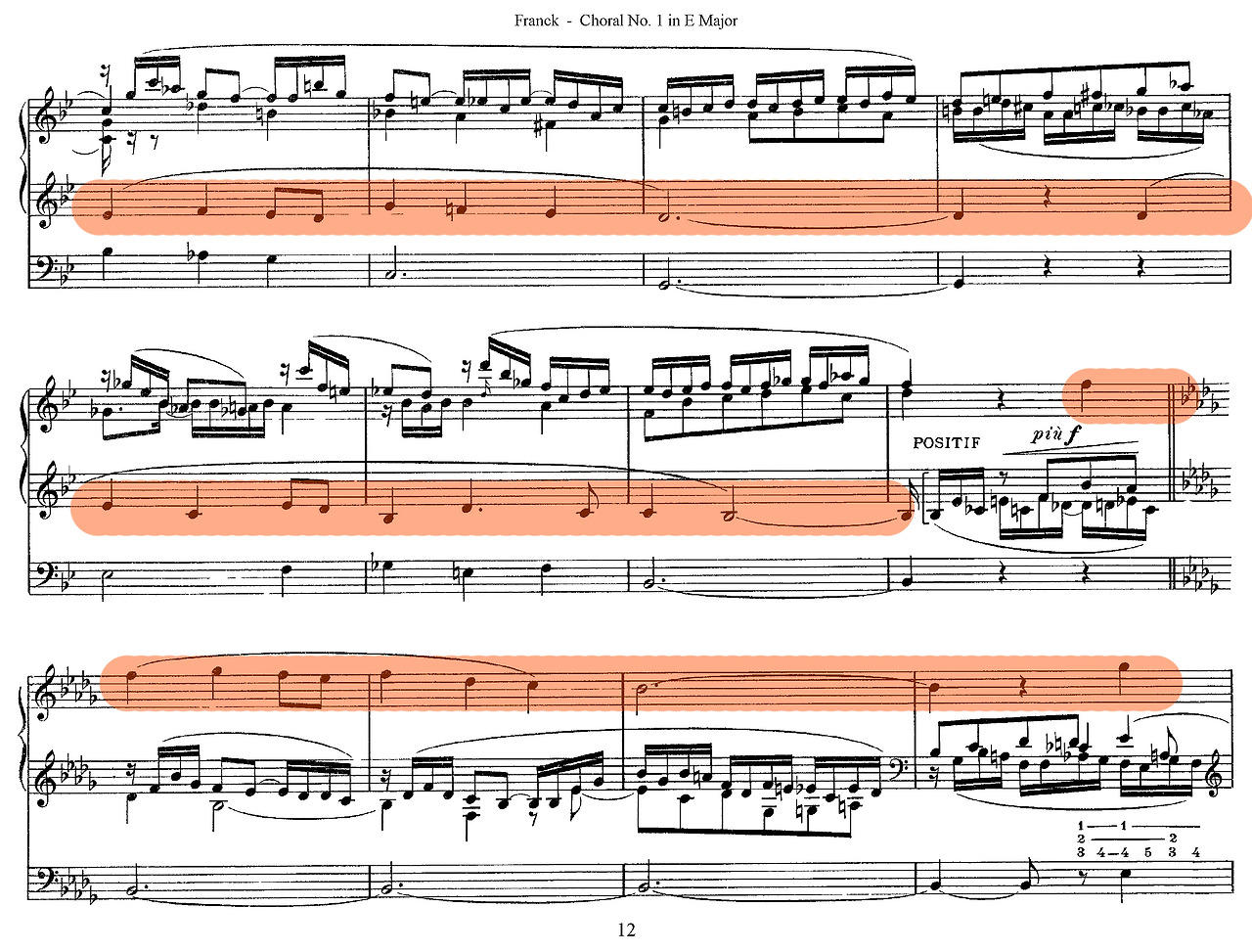 셋째, 구조적 통일성이다. 프랑크는 바흐식 대위법에 반음계적 화성과 순환 형식을 접목해 핵심 모티프가 곡 전체를 관통하도록 구성했다. 《세 개의 코랄》(Trois Chorals, 1890)에서 점층적 전개와 모티프 변형을 통해 오르간 음악은 단편적 연주에서 벗어나 대규모 서사적 장르로 발전했다. 이러한 기법은 후대 비도르(Charles-Marie Widor)와 비에른(Louis Vierne)이 프랑스 교향적 오르간 전통을 확립하는 기반이 되었다.
