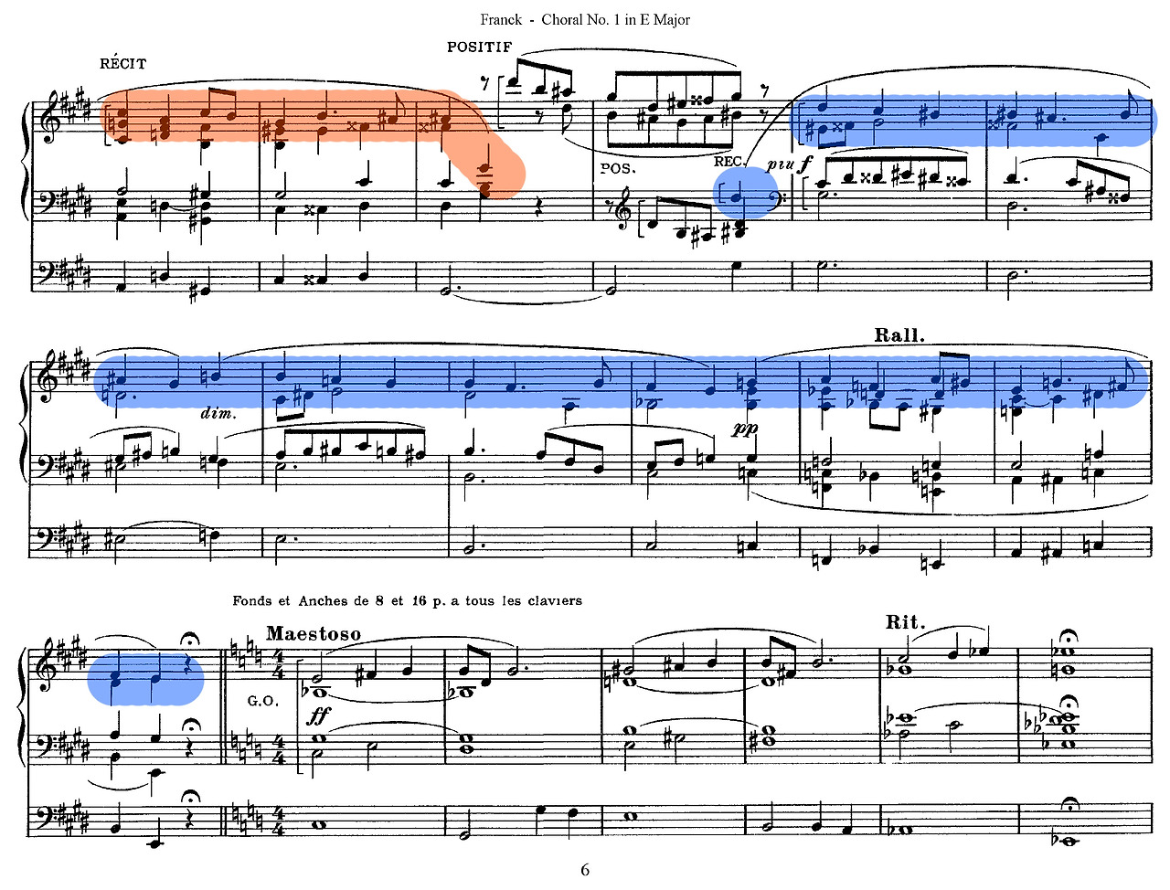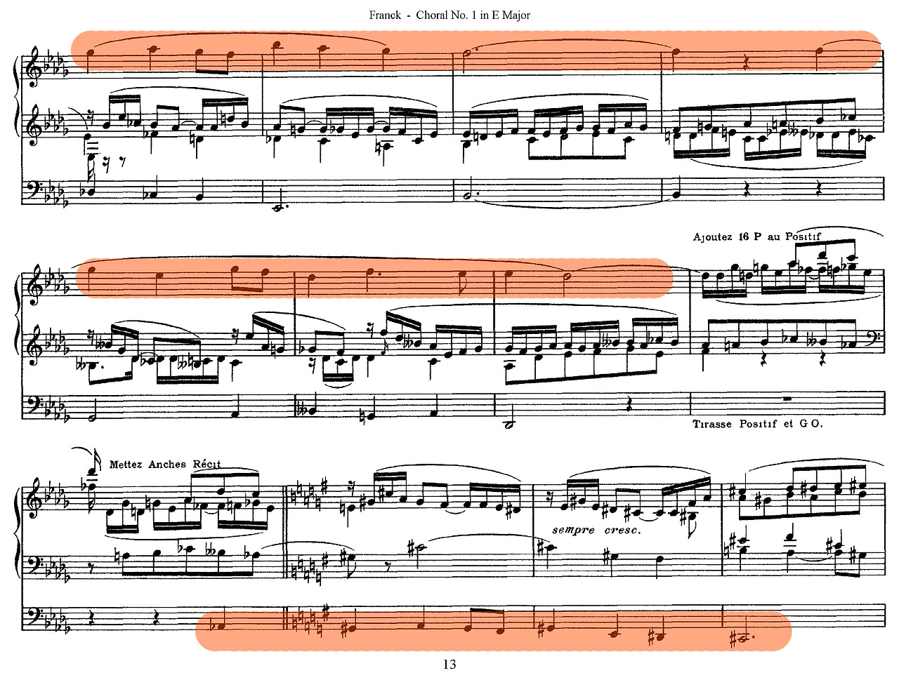 프랑크는 전통적인 전례 음악의 틀을 깨고 오르간을 위한 ‘절대 음악’의 세계를 개척했다. 그의 음악은 바흐의 엄격한 대위법적 전통 위에, 바그너(Wagner)의 관현악적 색채와 반음계적 화성을 결합한 독특한 지점에 위치한다. 이를 통해 프랑크는 오르간을 단순 전례용 반주에서 벗어나, 음향적, 화성적, 서사적 가능성을 모두 갖춘 독립적 기악 장르로 확립했다.