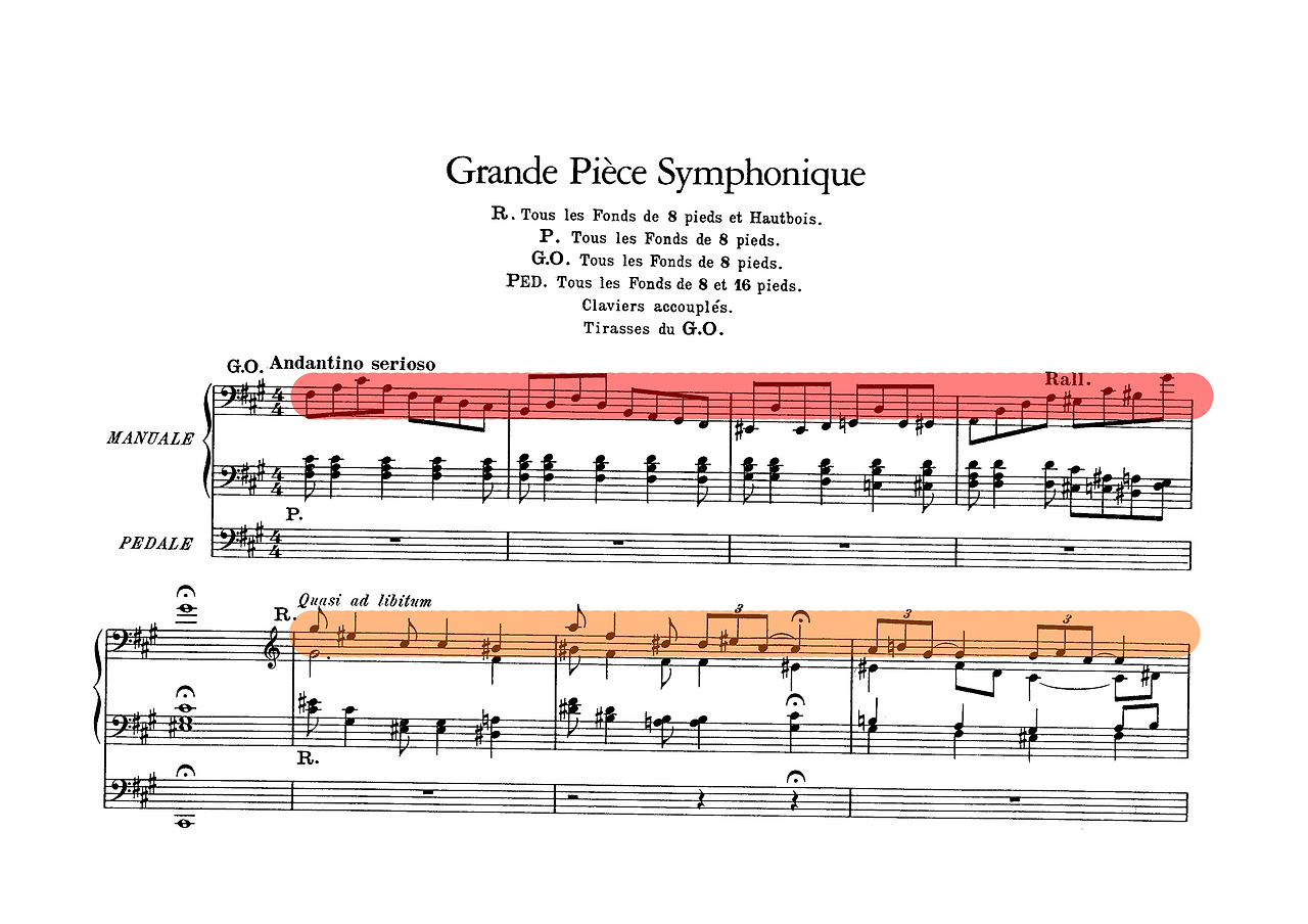 그는 순환 형식(Cyclic Form)과 반음계적 화성을 탐구하며, 《Six Pièces pour grand orgue》 중 《Grande Pièce Symphonique》에서 주제의 반복과 변형을 통해 작품 전체의 통일성을 구축하고, 화성과 음색 대비로 긴장감을 극대화했다. 점층적으로 확대되는 클라이맥스 속에서 작은 모티프가 작품 전반을 지배하는 교향적 전개가 나타난다. 또한 오르간의 각 스톱을 오케스트라처럼 활용하여 다양한 음향 층위를 설계할 수 있음을 입증했다.