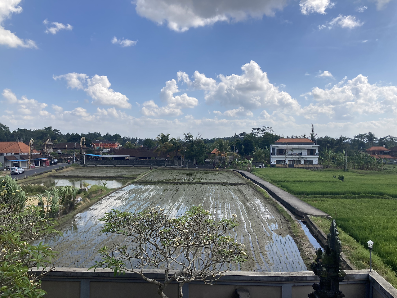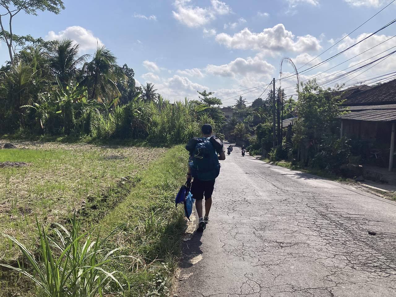 심지어 꾸따에서 우붓으로 이동할 때 우리는 대중교통으로 버스를 이용했다. 편하게 택시를 타면 약 3만 원 돈이 나가고 좀 고생하더라도 버스를 타면 2천 원이 안 되는 금액으로 이동할 수 있었다. 전혀 망설이지 않고 후자를 선택한다. 그렇게 버스를 타고 내려 우붓 숙소를 향해 걸어간다. 숙소로 걸어가는 길은 주위에 논과 밭이 있는 시골동네 느낌이다. 그곳에 우리의 '가성비 숙소'가 있었다.