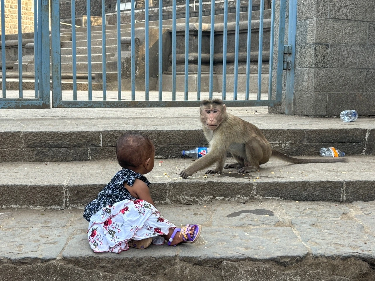 원숭이 하면 생각나는 일화가 있다. 인도 뭄바이의 엘리펀트섬에 갔었을 때다. 이 섬은 몽키섬이라고 불러도 될 정도로 원숭이가 많다. 돌계단에 한 인도 가족이 쉬고 있었다. 3살 정도 되어 보이는 아가도 있었는데 그 옆에 아가만 한 크기의 원숭이가 앉아있었다. 아가는 원숭이를 딱히 무서워하지 않았다. 심지어 아가의 아빠는 이 모습을 사진으로 남겼다. 아빠가 아가를 데려가려고 하자 원숭이는 단단히 오해를 했는지 아가를 때렸다. 아가는 울지 않았고 아빠는 웃었다. 한국이었다면 엄마가 아빠의 등짝이 시뻘게지도록 때리지 않았을까?