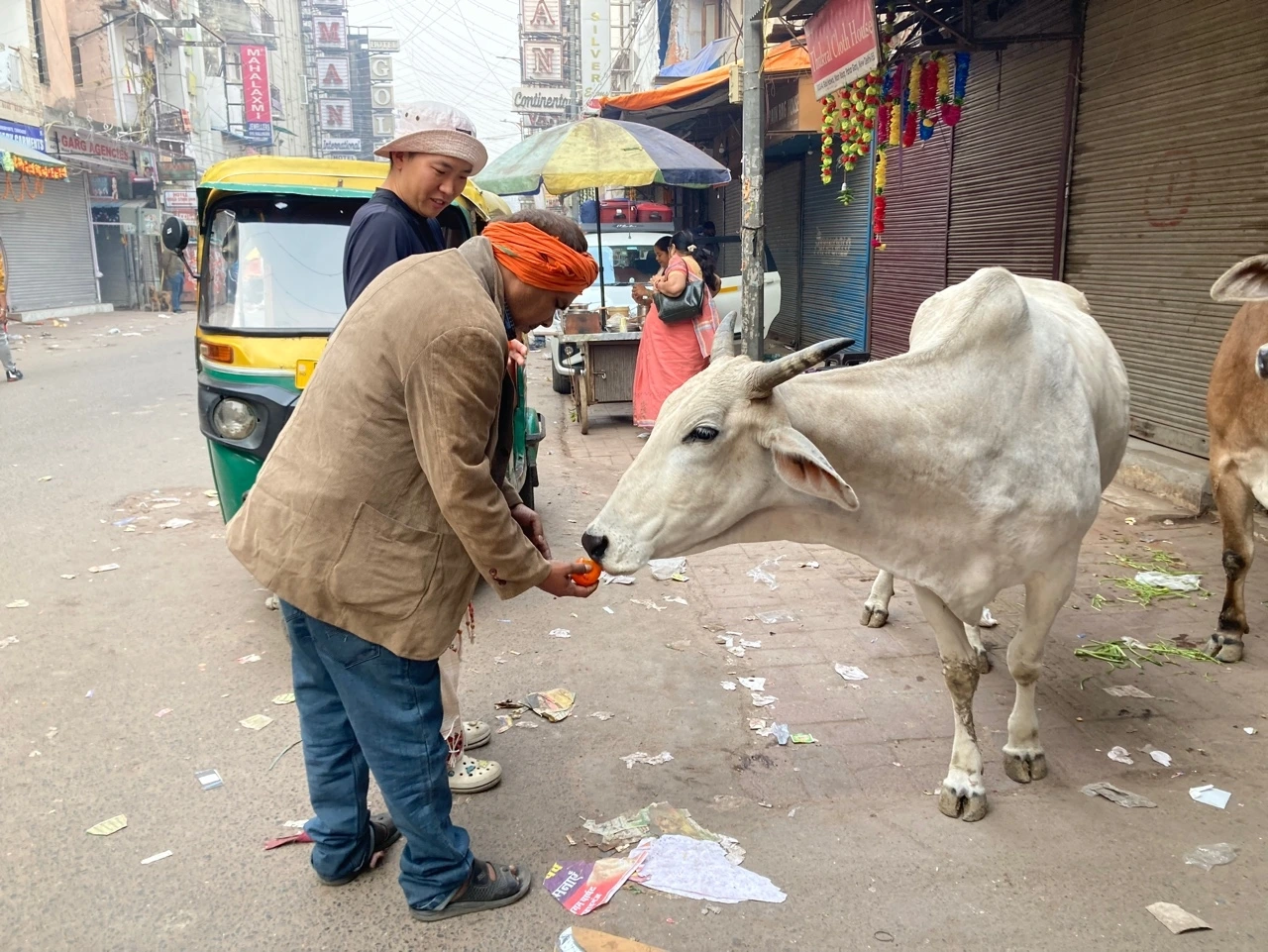 인도에서 길에 돌아다니는 소들과 마주쳤을 때 신기하면서도 당황스러웠다. 덩치가 너무 커서일까? 좁은 길에서 마주치면 무서워서 돌아갔다. 하지만 인도에서 70여 일을 지내다 보니 길거리에서 마주치는 소는 금방 익숙해졌다. 리시케시 한 식당에서 남은 짜파티를 소에게 챙겨주는 모습을 봤다. 저녁시간이라 슬슬 장사를 끝낼 시간인듯했다. 소는 매일 같은 시간에 오는 것 같은 자연스러운 몸짓으로 꼬리를 양 옆으로 살랑살랑 흔들며 짜파티를 날름 받아먹었다. 소들을 보면서 저 덩치를 유지하기 힘들 텐데 걱정을 한 적이 있었는데 이 모습을 보고 이해할 수 있었다.