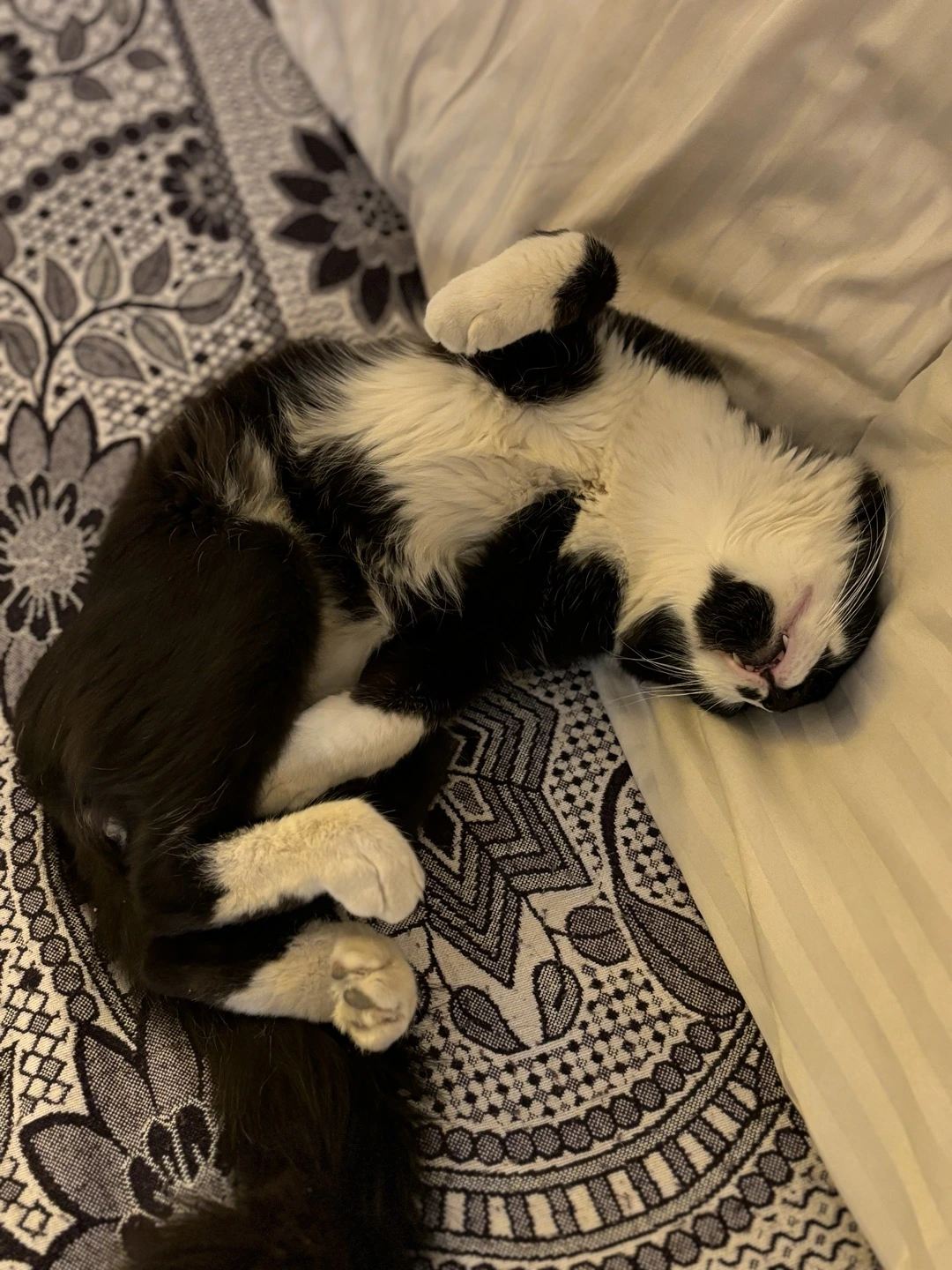 아침에 눈을 떠 고양이를 바라봤다. 가장 취약한 배를 드러내고 자고 있다. 짧은 만남이었는데 이 고양이는 어떻게 나를 믿고 배를 뒤집어 까며 잘 수 있는 거지? 신기했다. 사람에 대한 불신이 가득한 내 입장에서는 이해할 수 없는 행동이었다. 이 고양이는 이유는 모르겠지만 내가 자기를 헤치지 않을 것이라는 강한 믿음이 있기에 가능한 것이 아닐까 싶다.
