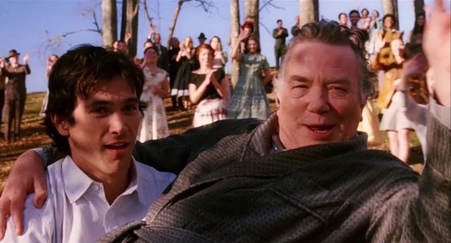 아버지가 곧 죽음이 가까워졌을 때 아들은 침대 옆에서 있었는데, 계속해서 자신이 어떻게 죽는지 물어봤죠. 아들은 아버지를 위해 본인도 허구를 가득 담아 아버지의 죽음을 이야기합니다. 아버지는 그렇게 아들의 말을 듣고 평화롭게 죽었어요. 이후 장례식장에 많은 사람이 찾아오는데 모두 아버지가 말했던 거인, 서커스 단장, 부자가 된 시인, 등등 다양한 사람들이 모이는 것을 보게 됩니다. 대부분 사실이었던 것이었죠. 아들은 본인의 자식한테도 아버지의 이야기를 들려주기 시작하며 영화는 끝납니다.
