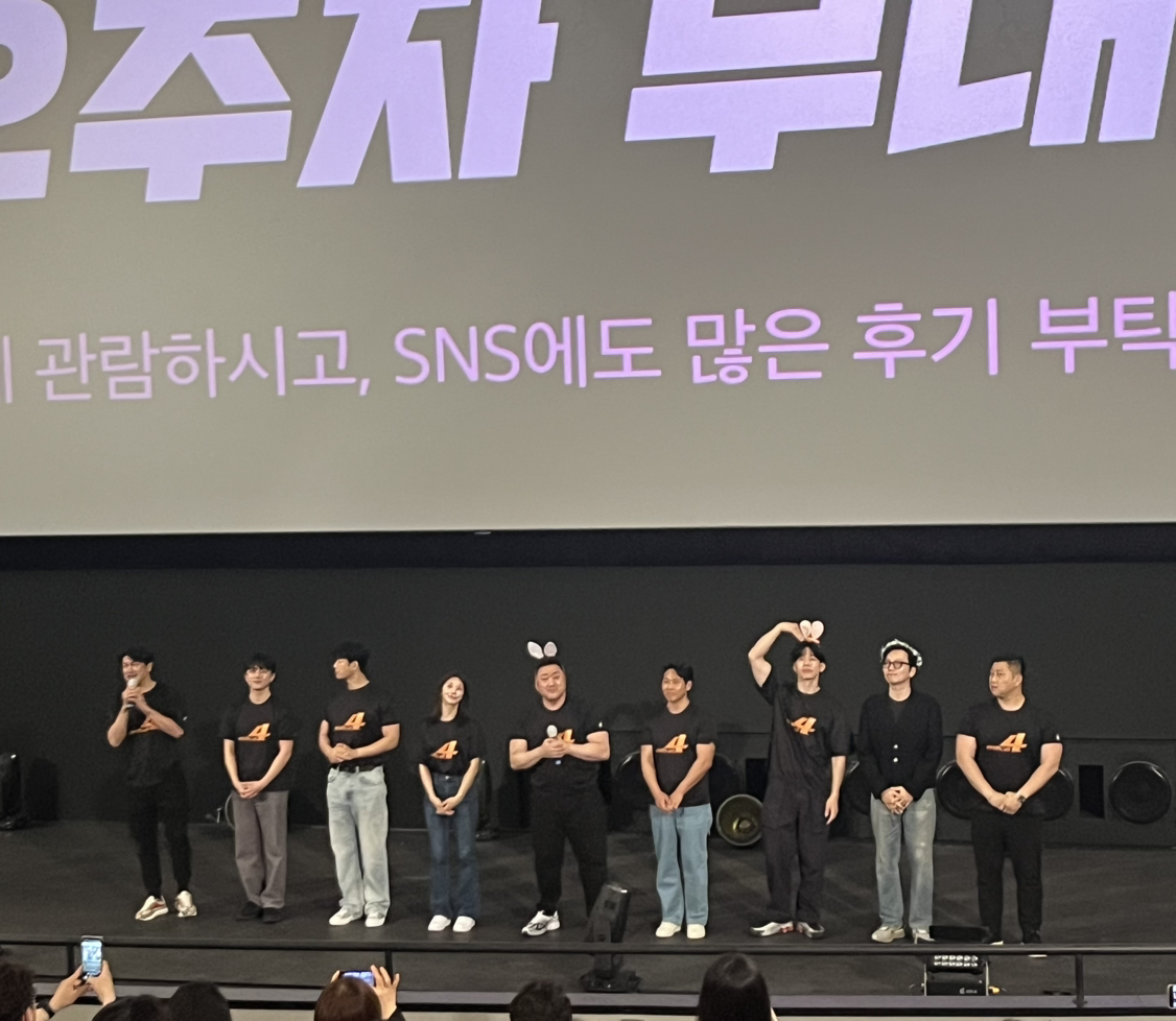 김무열 배우님이 하트모양을 했는데, 처음엔 이동휘 배우님이 받아주지 않으셔서 머쓱한 모양새가 되셨네요. 무대인사가 끝나고 영화를 봤습니다.