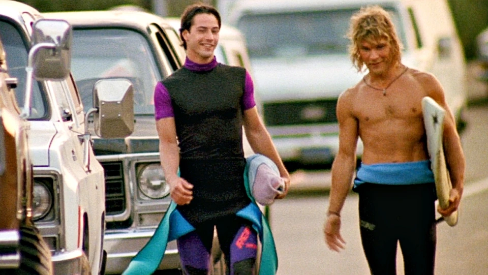 조니(키아누 리브스)는 유명한 미식축구 쿼터백이었지만 다리부상으로 그만두고 FBI 요원이 됩니다. 파파스와 파트너로 활동하면서 잡히지 않는 은행강도 무리를 잡으려고 하는데요. 그들에 대한 단서라고는 엉덩이 사진으로 봤을 때 살이 탄 모양으로 보아 서퍼들이란 사실이었죠.