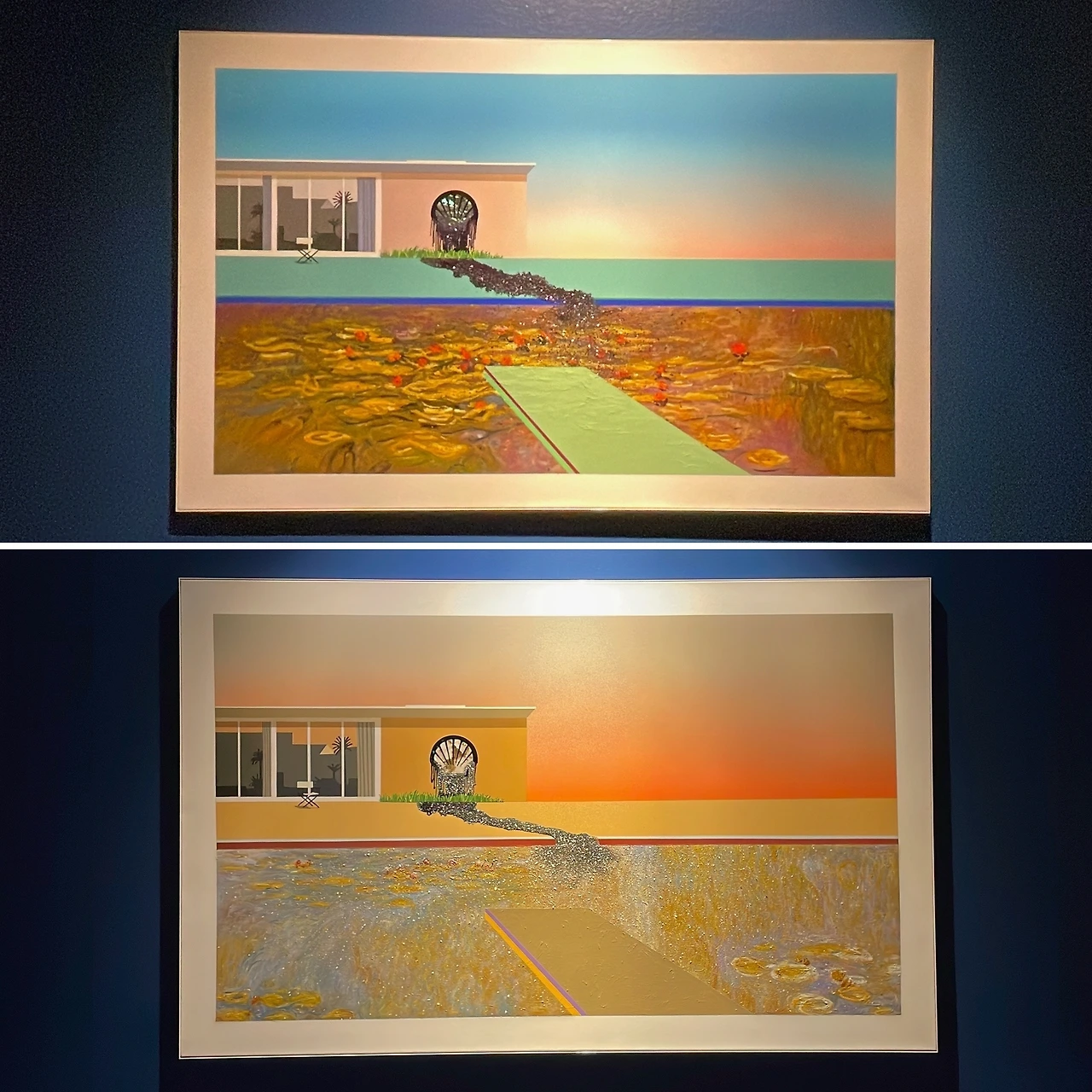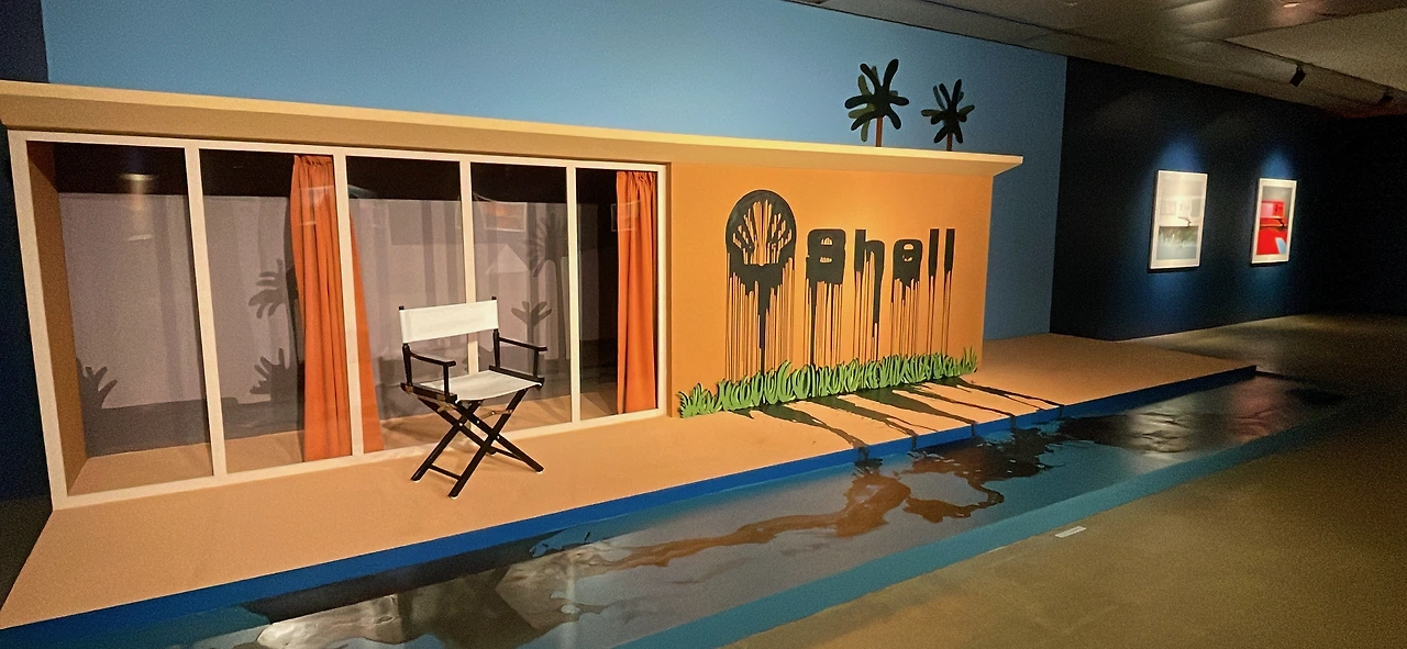 자세히 보면 연못이 오일로 뒤덮여 있고,