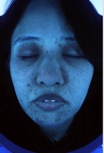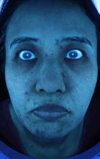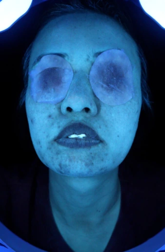 아마 보는 이가 헉! 하고 깜짝 놀라며 보지 않았을까? 나 역시 푸른빛에 요상하게 생긴 얼굴을 보고 호로물을 즐겨 작품을 만드는 사람인줄 알았다. 그런데 어딘가 저 모습 많이 봤다. 피부관리 받을 때 촬영하는 전/후 사진.. 내 얼굴에 있는 보이지 않는 미세한 것들이 속속히 밝혀지는 모습이다. 그 모습은 내 진짜 얼굴이지만 거부하게 되고 거절하게 된다. 그러나 그게 진짜 내 얼굴인걸. 화장으로 가리고 다닐 뿐이지..