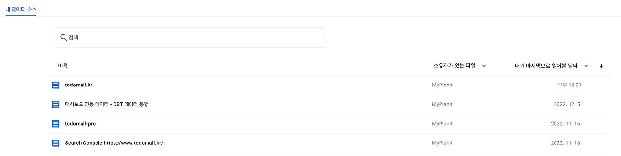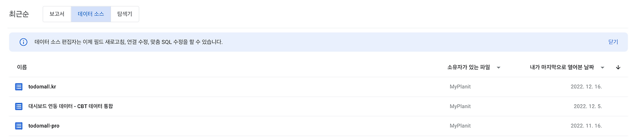 [내 데이터 소스]에 들어가면, 현재 계정의 데이터 소스에 등록된 모든 데이터베이스를 확인할 수 있다. 여기서 필요한 데이터베이스를 선택하고, 추가하면 된다.