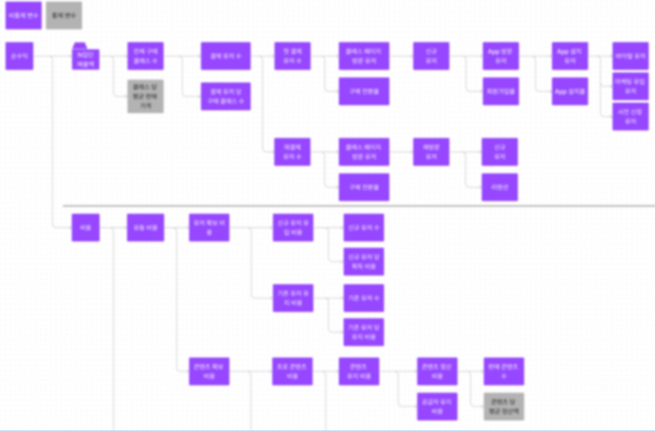 이렇게 무수하게 쪼갠 하위 지표를 시각화하면 아래와 같다. 만약 지표를 쪼갠다고 하면. 피그잼이나 미로 등의 온라인 화이트보드를 사용하는 걸 추천한다.