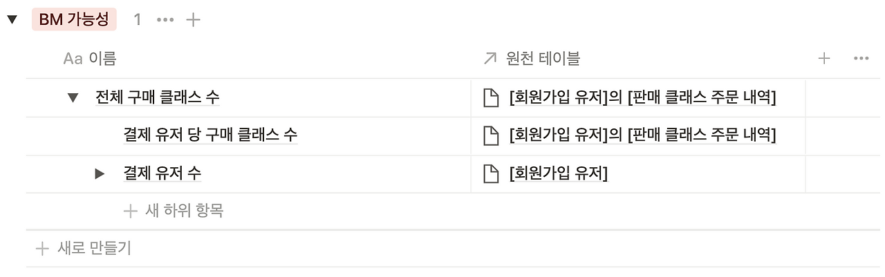 결제 유저도 쪼갤 수 있다. 전체 유저와 결제 비율로 나올 수도 있고 혹은, 첫 결제 유저와 재결제 유저로 나눌 수도 있다. 마찬가지로, 각 결제 유저도 쪼갤 수 있다. 클래스 구매 페이지를 본 유저와 전환율로 구할 수 있다.