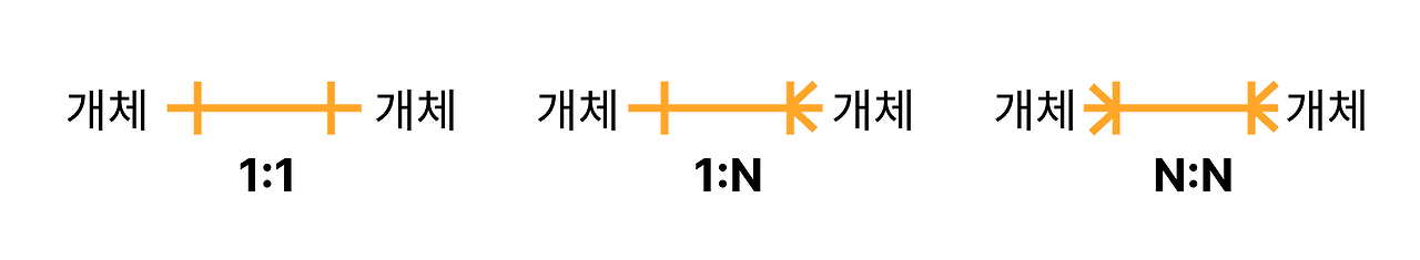 개체 간 관계를 정의할 때, 관계수도 고려해야 한다. 관계수는 서로 다른 개체가 어떻게 관계를 맺고 있는지 보여주는데, 1:1, 1:N, N:N 유형이 존재한다.